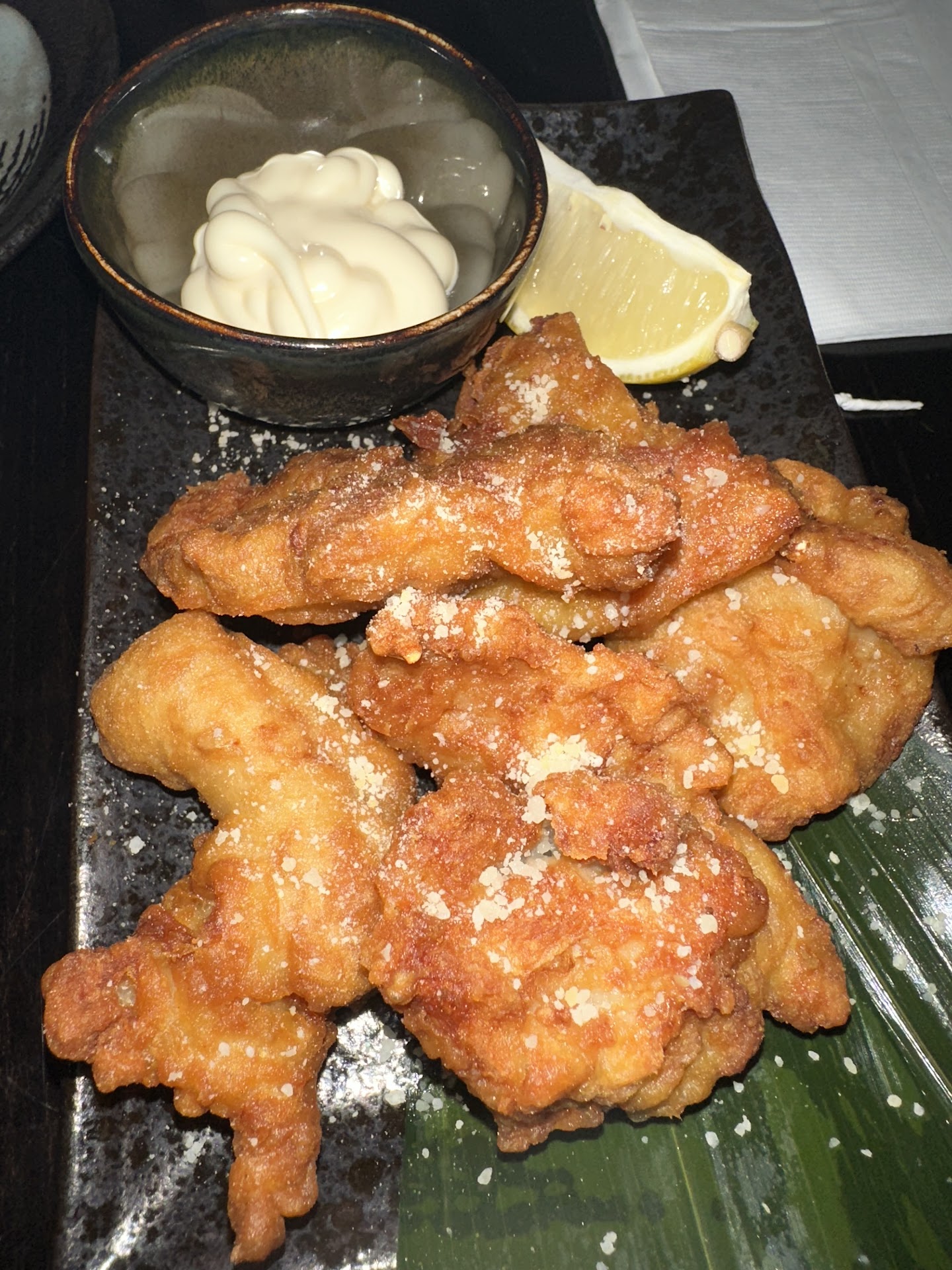 The karaage fried chicken with lemon mayonnaise on the side is a crowd favorite. Just the right balance of tenderness and crispness without the oily heavyness that some fried chicken can have.