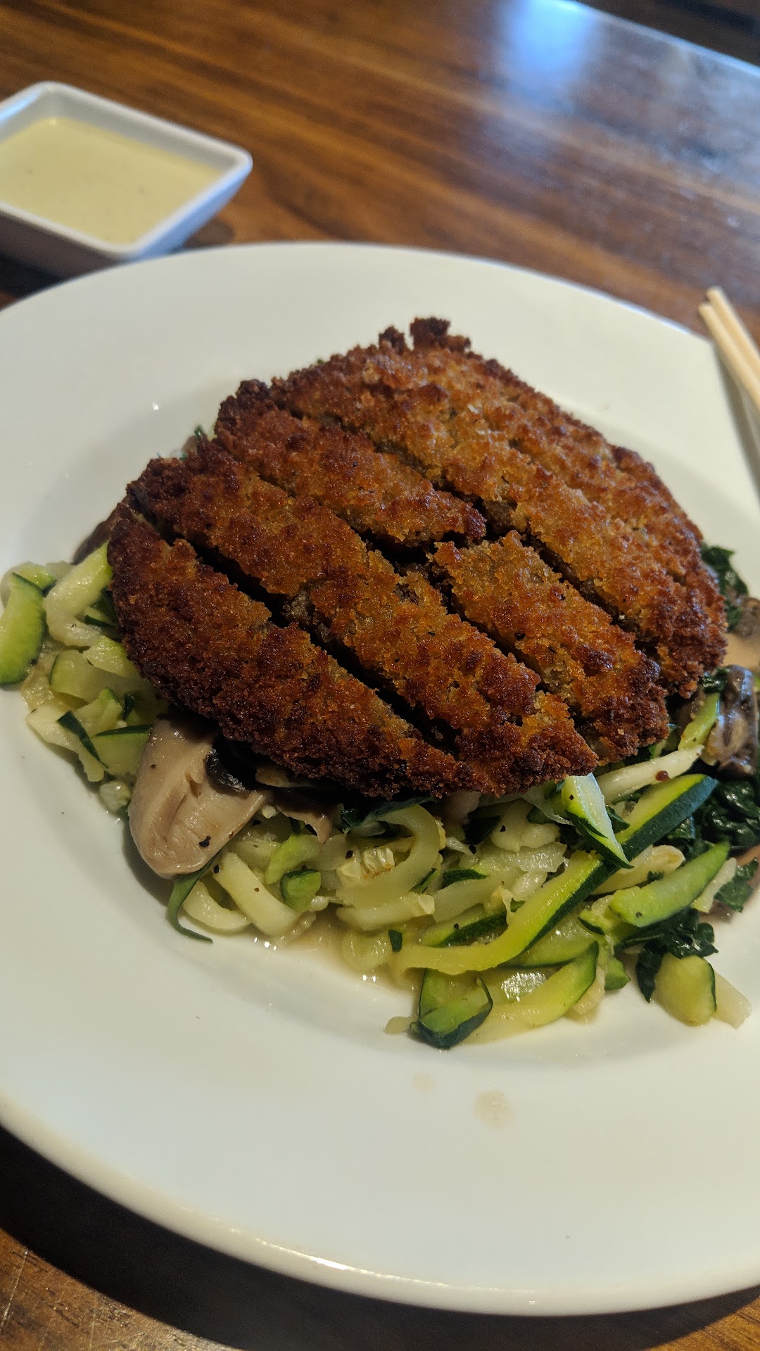 Food was pretty good. The Mushroom Harvest Bowl was a bit under seasoned, but the dressing was delicious. Could've used more. The Bison burger was cooked perfectly and juicy. The kids food was good and tasty. The only issue was we ordered a kids cheese burger that didn't come out until we were done. The attendant made it right by comping the meal and apologizing repeatedly. Appreciated the extra...