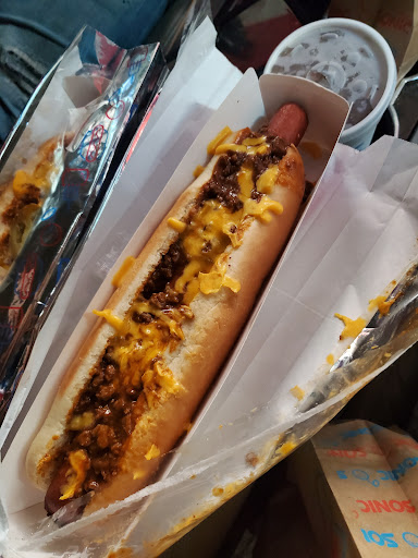 Read moreJust wanted a quick snack so I pulled into the Sonic Drive-In. There was only one car in their parking lot at 2:45 in the afternoon so they were not busy. I ordered a medium chili cheese tater tots and a corn dog. The order was brought out probably within 2 minutes, and I'm all for "Speedy service", but the corn dog tasted like it had been sitting under a heat lamp for a couple of days it was so dry. I would have rather waited five to seven minutes for something that had been fresh cooked. Considering that there was no one else in the parking lot, I think the food should be cooked and made to order and not something that had been sitting on a heat lamp turning into leather....