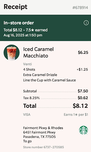 Read moreI normally don’t go here bkuz it’s outta my way but when ever I’m on the fairmont side of Pasadena I prefer this Rhodes& fairmont parkway Starbucks. The 6 times I have visited here the coffee has been prefect and taste like they make the coffee with angels serving . I normally would go to the spencer & beltway 8 or the spencer and west side (worst starbuck ever) . Bkuz I live on that side of town and it’s on my way to work or to the dog park with my puppies and I need coffee to start my day. I will say to anyone who goes to Starbucks . Fairmont parkway has the best two stores but the Rhodes one is top tier and that’s no shade toward the Mikey gilley one they are good but not better then this one . Sorry Mikey gilley I love your baristas but these baristas have the better experience and like I said angels making coffee . From now on I think I will travel to y’all for my coffee even if I have to waste gas on Sundays for coffee . Spencer highway & west side did me dirty with there coffee they gave to me today and they don’t care they are horrible. Reviews tell the...