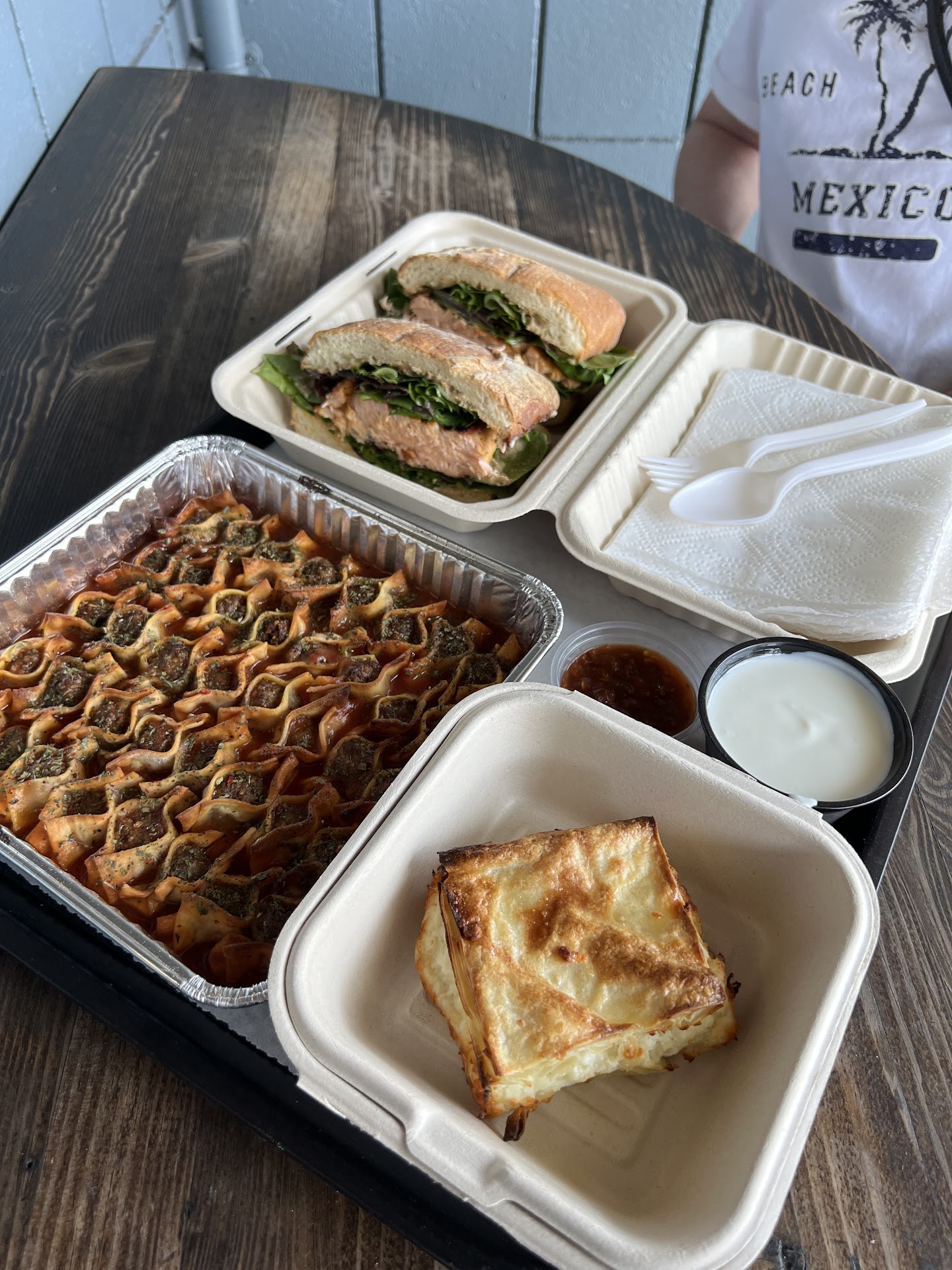 Read moreSaw this place on Instagram and decided to check it out. We were sooooo impressed with the food. The owner (im so sorry I didnt get your name when we talked) told us about the food, answered our questions and sold us what he thought we wanted, from our talking. We got the spicy sauce and we all were super impressed! Delicious! If rhe heat got too much a little bit of the yogurt sauce (also Delicious) called it off and adjusted the flavor. The Su-Beoreg was fantastic! I dipped it a bit in the sauce too(I dont know if this is the culturally correct thing but it was great!). Don't expect to sit down and eat inside. This is a pretty much pick up/to go place. The inside is very small and no tables. We sat at the 2 outside tables. Worked for 4 of us. But the owner said they sell them frozen and you take them home and bake them for yourself! Super easy! We plan on getting a tray or 2 of these for our next party. Oh and I looked up the origination of this dish and it's very interesting (at least to me). So enjoy and hopefully...