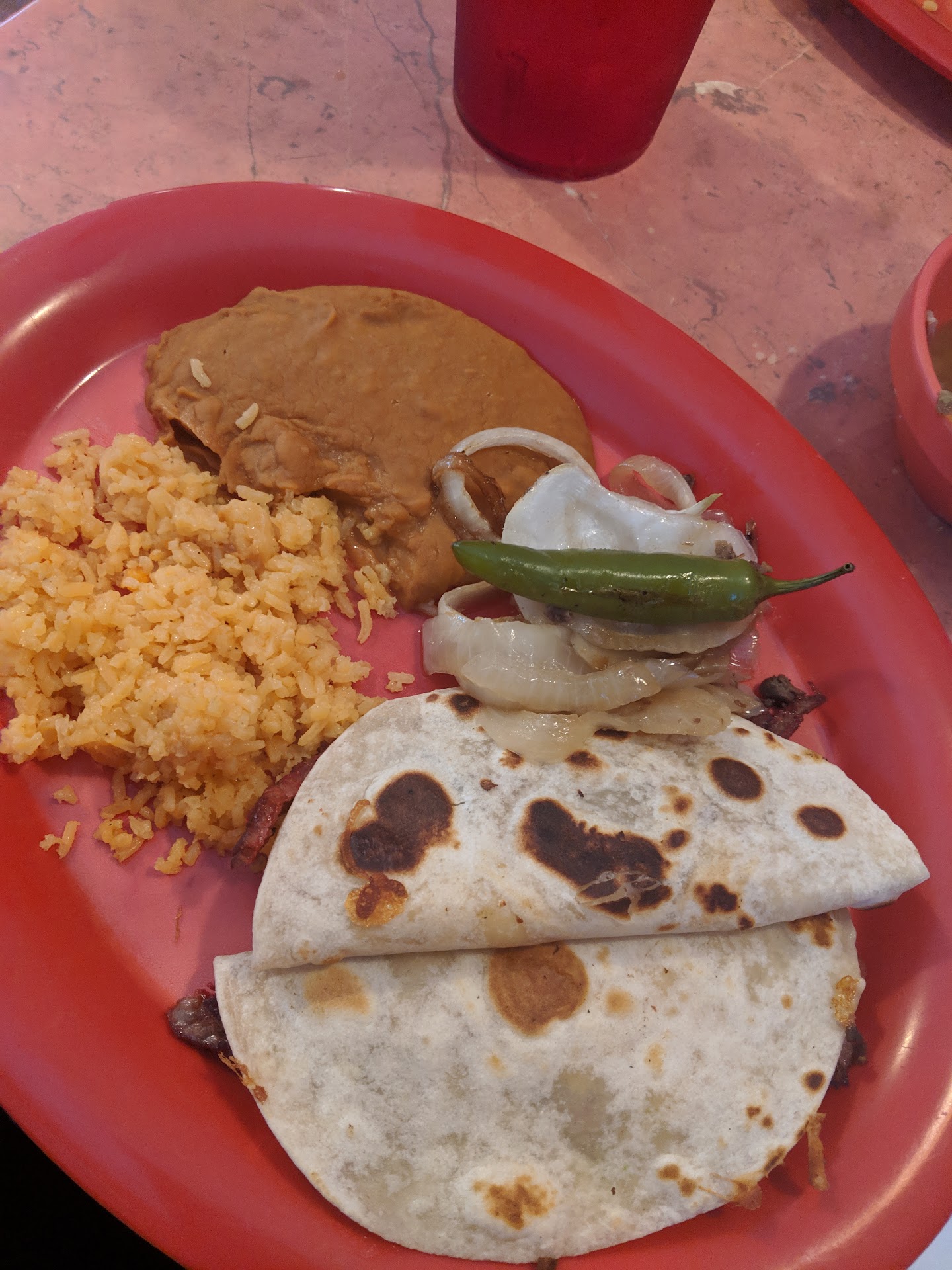 Read moreOur first and last visit. It took quite a while to get service and we had two different people it seemed who were waiting on us. We got our drinks and then someone brought us boiled beans. A few minutes later he brought out some limes, some onions, and some cilantro. I asked if we were going to get chips and they said no, we get beans instead. When they finally came to take our order, I asked what was good since it was our first visit. We were told the steak fajita meat so we both ordered the pick 2 dinner thing. I can't remember the names of the steak soft tacos but we both ordered different ones. It was horrible! I did not eat anything off of my plate except one bite of whatever that steak soft taco thing was. When I ask for it to be taken off of my bill after about 20 minutes of waiting for someone to come by ( I actually have to walk up to where they were and ask for help) the guy told me we do not take things off of bills. I told him that I didn't eat anything on my plate and that it was terrible and I asked him to get a manager or someone because it was terrible. The meat was bright red...like unbelievably bright red!! I have never seen meat that looked like that before in my 41 years of life! This is a place we will...