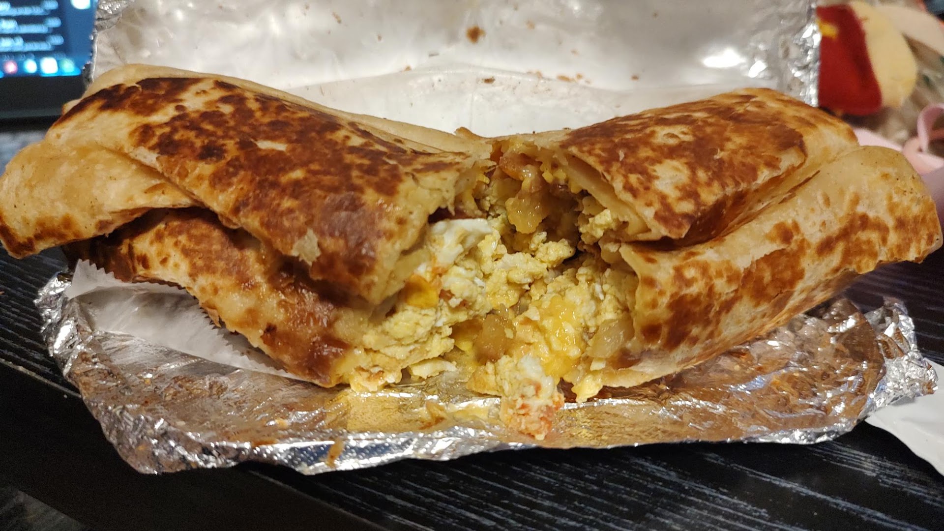This taco truck is awesome. Spicy Egg, Spicy Potato, Bacon, Bean and Cheese breakfast tacos are fantastic. The breakfast burritos are gigantic and can serve as a meal for breakfast and lunch. I ate the whole thing for breakfast once and it was too much food for me and I ended up skipping lunch that day. I've had the barbacoa and pastor lunch tacos as well, and they are very flavorful. Now for the best. The super spicy red sauce. Ohh man is that sauce good. I always put both red and green on my meals, but that red sauce is the bee's knees. Can't wait until my next...