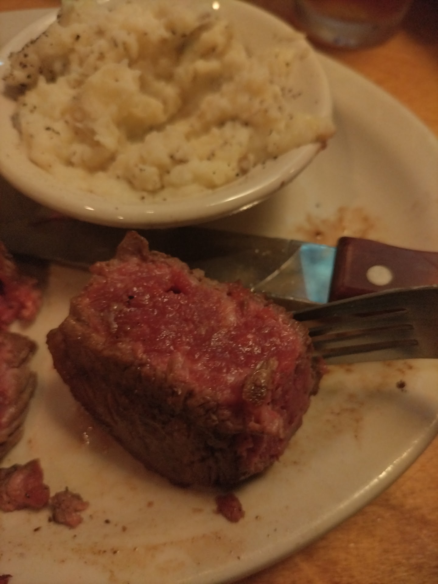 Read moreI want to make it clear that this review pertains to those who like very little pink on their steak which is my wifeâs preference. If you order yours medium or below the experience is very consistent and over all goodâŠ. Food here is pretty good however for people who like their steaks on the done side but still flavorful and juicy I donât recommend. My wife orders hers medium well because she doesnât like too much red but she also donât want it dry and chewy and thatâs where this particular location needs improvement. I canât put my finger on it but my hunch is that in order to save time and get those MW and WD steaks out fast they probably mark a few of them on the grill and then throw them on a baking sheet then put them in a convection oven at 280F or thereabouts. As they cook slow they release their juice and cook at the temp they want and then pull out a steak whenever they get an order for MW/WD steaks and whatever gets cooked to well done they would have the choice to serve to someone who likes WD steak or just pull it and cut it to serve the jr steak bites from the kids menu⊠for them is the perfect answer but the problem is that those customers are no longer eating a grilled steak, they are eating a boiled steak that cooked on its own juices. While it may seem juicy it has certain characteristics that are not enjoyable to the palate such as that boiled taste, a lack of spices since most gets washed away with the liquid the meat simmers into, and a soft and pale outer surface instead of that crisp toasty crust a grilled steak should have. We have tried to avoid this by ordering it medium and then as soon as they bring it out we send it back to continue cooking to the desired temperature but itâs futile because their kitchen staff has horrible practices on grilling steaks in order to reduce cooking times and itâs very obvious that as soon as they get our steak back on the grill they start to lean on it and press and squeeze all the juices out of it so that they bring it to us dried up and with the grill marks on one side indented so far into the meat that it drives me crazy the egregious disregard for the customer experience. We used to go there very often because we enjoyed the place and food but out of at least 30 visits I remember only 2 or 3 occasions that they actually got her steak right. We recently started to go to the Texas Roadhouse on gulf freeway and el dorado Blvd and they gotten it right 3 out of 3 times. Today we gave the Spencer location a shot again and boiled steak again⊠will not be coming back to this location even though itâs so much closer to my house than...