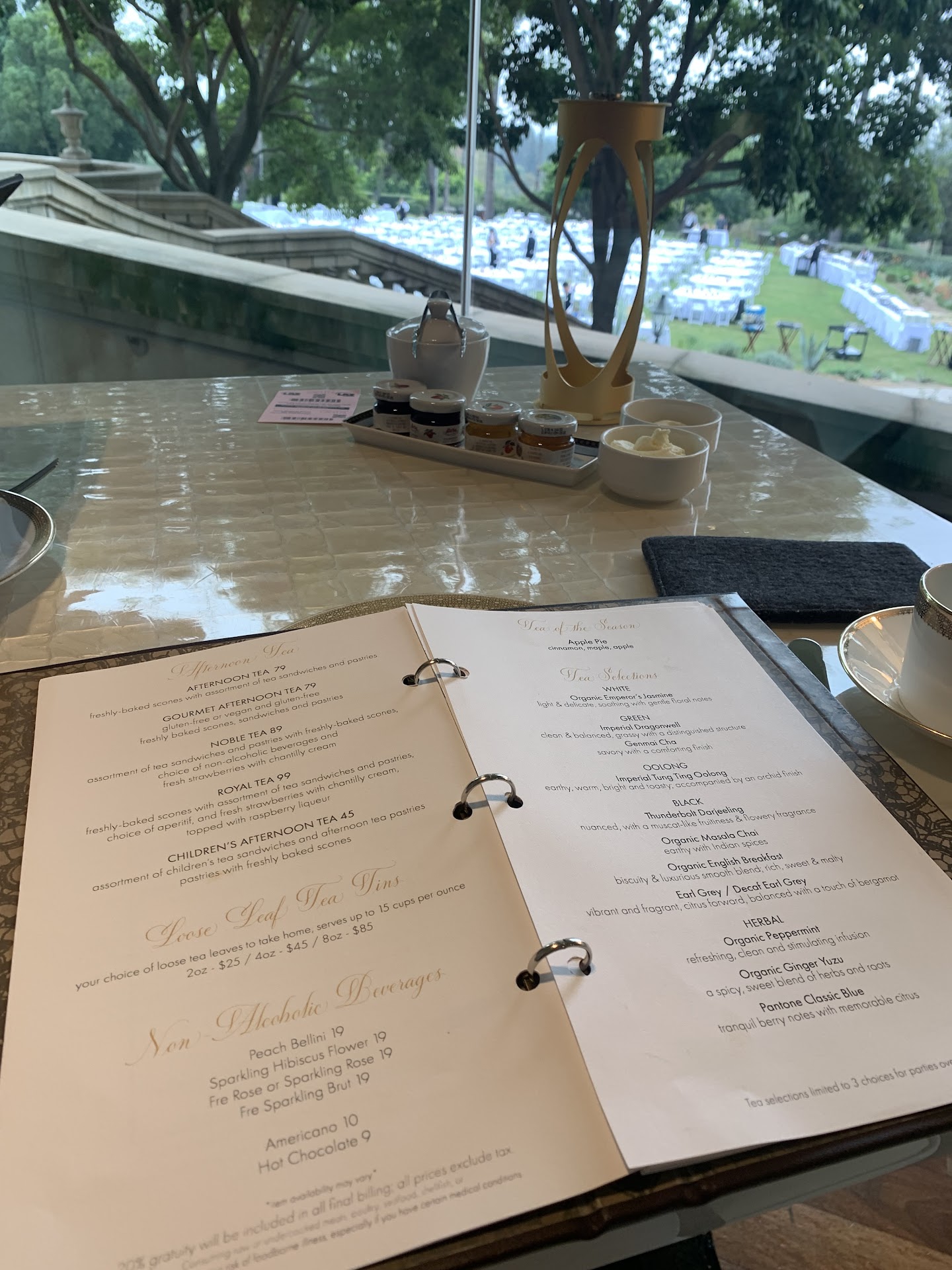It was so unfortunate and it was our second time here (and the reason we came here because we liked 4 stars last time tea last visit in pretty tea room) . This time was a total disaster. They had an event and last min they called and told us yea will be in reg restaurant. No tea atmosphere surrounding experience, no harp, no relaxing music or joy and people barely even were there. They charged a service charge and brought a very small amount of sandwiches , mostly just and sweets… Royal tea for what they brought definitely not worth over $80 each, I felt like we were ripped off. I left hungry( I wish were more sandwiches than sweets) . Felt like ripped off. Yea we’re not refilled for us( we did ourselves) waiter just came randomly yo check on us 3 times( one time to bring check with already service charge on it)😂 We wanted to be this tea an amazing experience. Drove over one hr , was hoping it would be same as first time , no a total disappointment. Plus they charged extra for dipping cream with strawberry and cream was pink and thick and no champagne 🥂 or non alcoholic substitude was offered, still was charged. This tea place going to the hole.. 🕳️