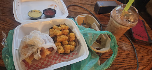 The portions are really large. I got the bogo deal and I couldn't finish my sandwich. Nothing wrong with the sandwich. Also a lot of tater tots. It's not a problem. I'll put them in the air fryer later. Also the milkshake was too much. I will have to put this in the freezer. I did a togo order and because the food was so hot it steamed up the inside of the togo box and the tots weren't as crunchy but that's just how tots work. The flavor of the chicken tenders sandwich is good. They use those thick pickle slices way better than what you will find at chick fil a. The whole sandwich is better than any chick fila sandwich. The place was way busy with families and pickup orders I'm glad I had a pickup order. Maybe the outside seating would have been nice it was open and free not bad for a sunset cool evening. I also ordered the Rocky road milkshake I don't know if I mention that before. They have this big yellow straw and it's pretty good it accommodates the nuts so nicely. But there was a factor I didn't mention. I have very big hot hands so when I grabbed this milkshake it's in a plastic cup and the heat from my hands quickly started to affect the physical viscosity of that milkshake so I guess it's fine that it was a pickup order because in the heat of this summer my hot hands holding that drink would have been a problem but they gave me a drink carrier that's a special two drink only carrier And that was very helpful to help prevent my big hot hands from warming up the milkshake unnecessarily. The girl working there even offered twice to tie up the drinks in a bag for me but it was so busy I just wanted to leave because I knew I wasn't going to drop anything. I have dropped some things before. One time I dropped the whole bottle on the ground and it broke And my friend told me I should put it in a bag and I was like no I can just carry it. I thought about this moment when the girl asked me for the second time if I wanted her to tie this up. And I thought to myself there's no way that I'm going to break a bottle more than a year ago and then drop these drinks today. It's just not going to happen. So I said no it's okay I can just take it and I took those drinks all the way back to the car. Now in the car I had to actually take them out of that two drink holder and put them into my two cupholders because I didn't have any flat place to set this two drink holder. Well by the time I make it all the way back to where I'm going the drinks are fine and they even work covered on the top of stickers. So I took everything inside. I got to put the shake in the freezer now. Good tots. I'm going to save that two drink cup holder next time I have two drinks I can use it. /// 2024 Nice...