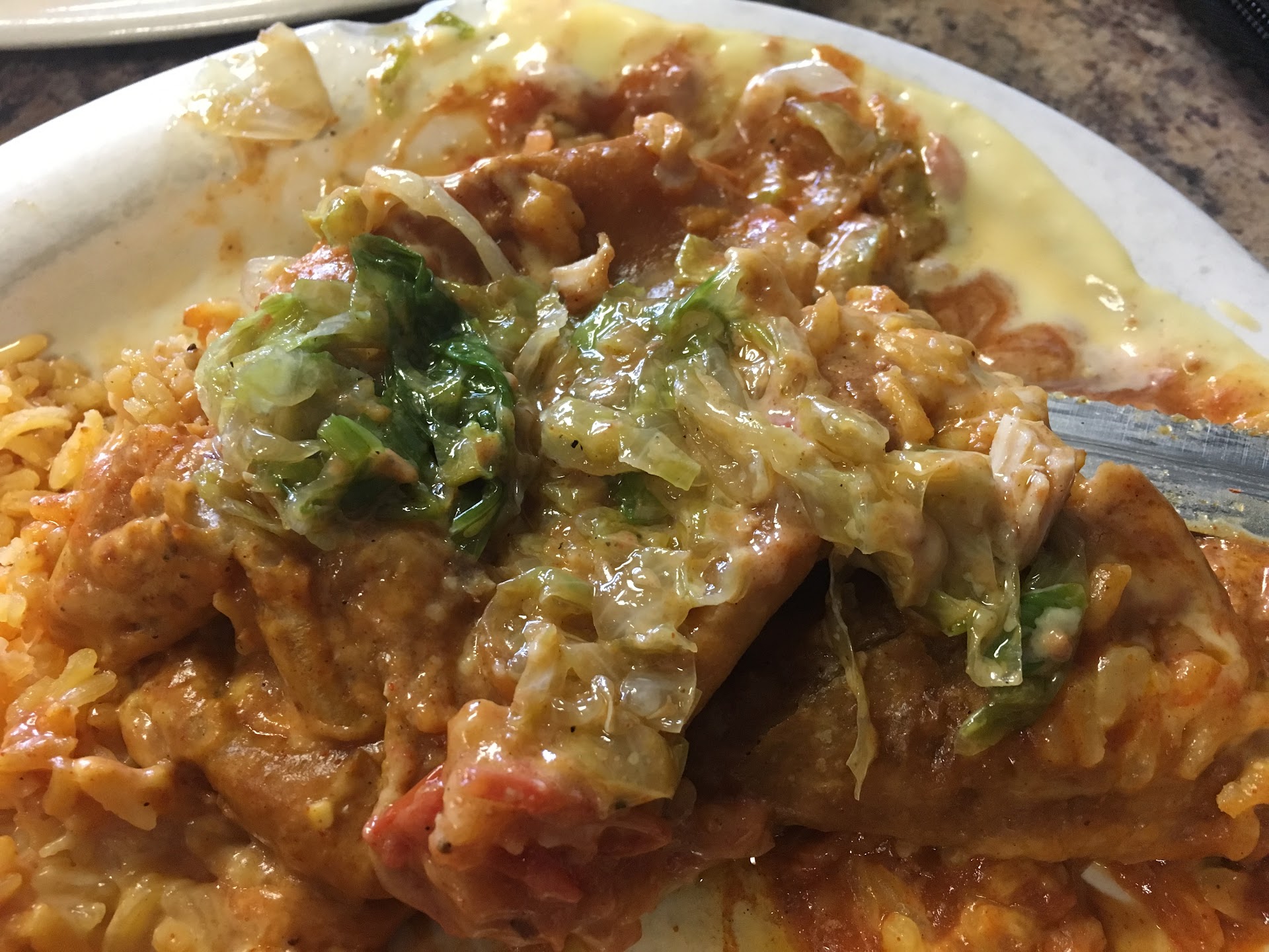 Ā Ā Ā Read moreI didnāt have a good experience here on Friday 1-19-18. I ordered a chicken chimichanga and when I cut into it, the lettuce was old and slimy. It looked like cabbage and tasted really gross. The waitress stopped by to drop the check and to see how things were before I even got to take a bite so I didnāt get to show her the problem. She never came back to check on us again. I picked the chicken out and ate that at least. Then when I went to pay the cashier asks how things were. I said not so good with the old slimy lettuce on my chimichanga. He replies ok you had the chimichanga and proceeds to ring me up like he doesnāt care about what I just said. So I said the lettuce was no bueno and he said he would go check on it. I could tell I was getting nowhere so I just walked out after paying even though I felt I should not have had to pay for my meal that I barely got to eat. I have attached the picture I took of the lettuce I took out of the chimichanga. Looks pretty gross. EDIT: the photo is #58 in the photos. It doesnāt show up in my review for...