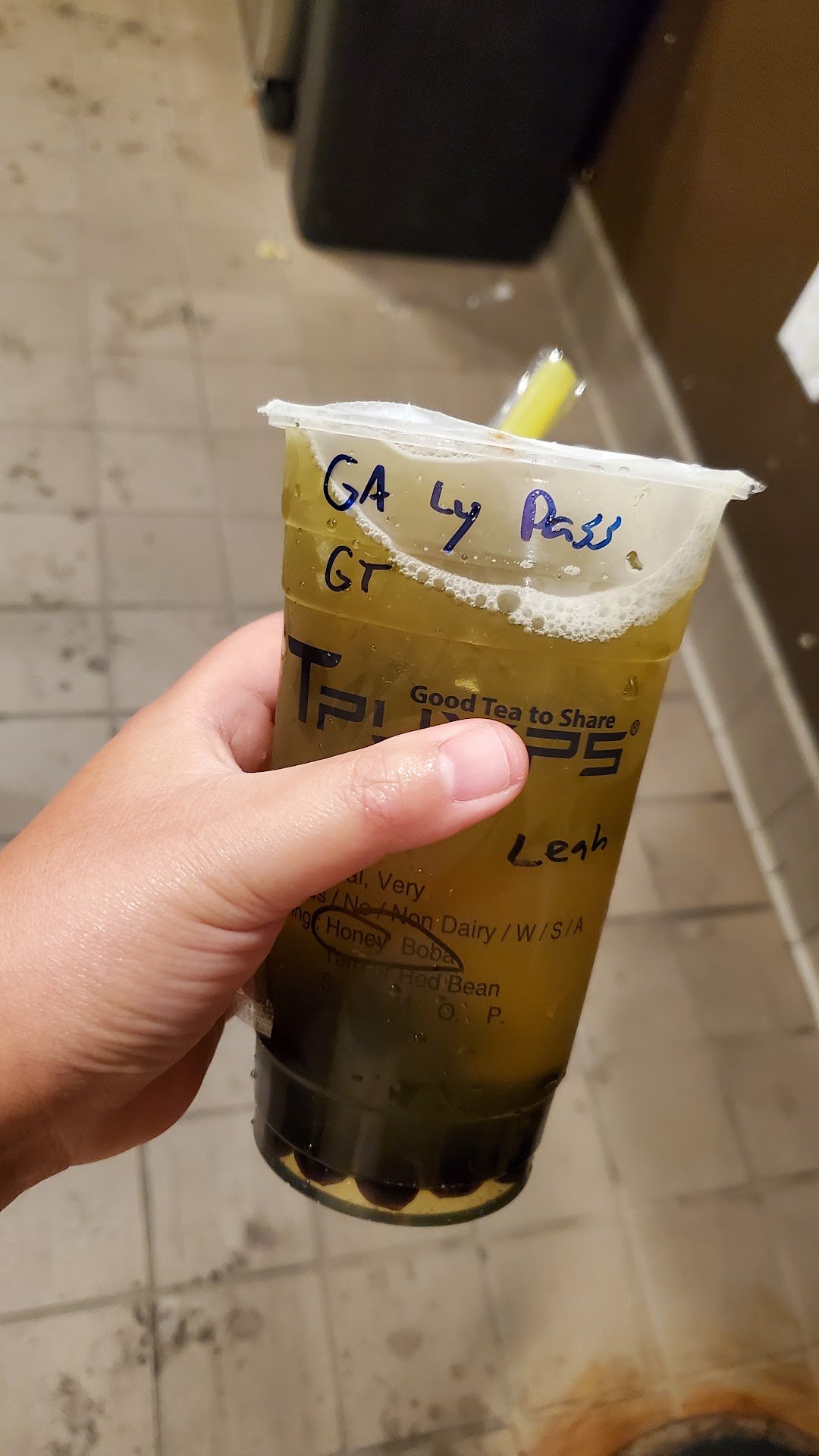 Read moreThis tea spot has decent drinks. The tea is nothing amazing, but they do have various options and combinations for novel drinks. They also have options for milk and milk substitutes for those looking for it (I believe it's Soy, Almond, non-dairy creamer, and Whole). And if you go a route that is NOT non-dairy creamer, it's an extra dollar. Most their options for flavoring, (for instance I prefer the Rose Vanilla Milk Green tea with boba) come in the form of the sugary pumps. So if you are trying to be conscientious about what you ingest, consider this. However, the drinks in my experience haven't been very consistent. As of my recent purchases, the drinks taste more watery than substantial with a mixed drink. The boba also isn't anything to die for, so I'm not sure what happened since my first taste there that made me fall in love with it.