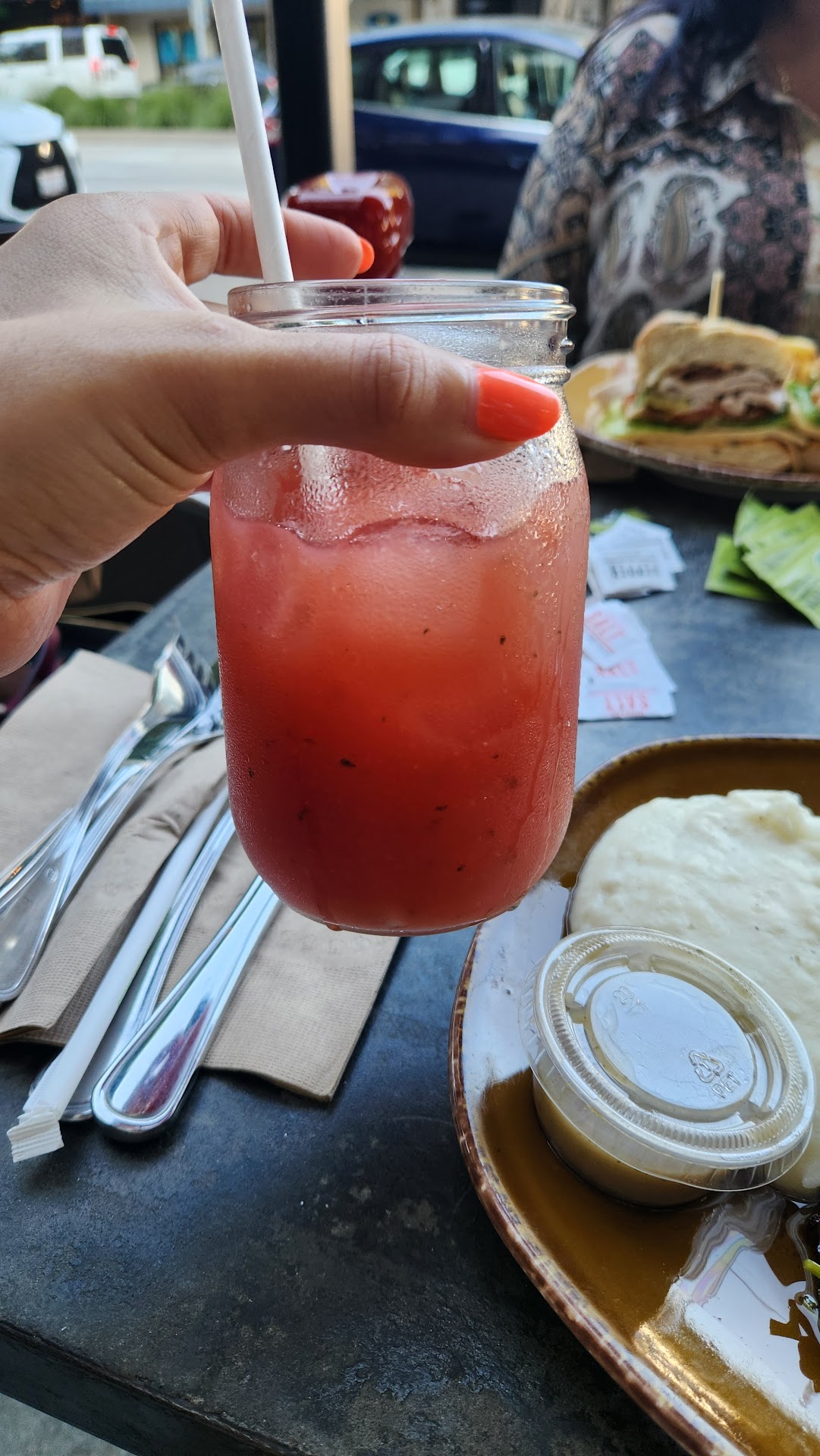 It's not, You order your food and pay before you sit down. Then, a server will bring out your dishes. The food options are all mostly gluten free, vegan. Think of clean eating. I ordered the chimichurri grass fed steak with mash potatoes and the house salad, and to drink, I got their watermelon pineapple aqua Fresca.