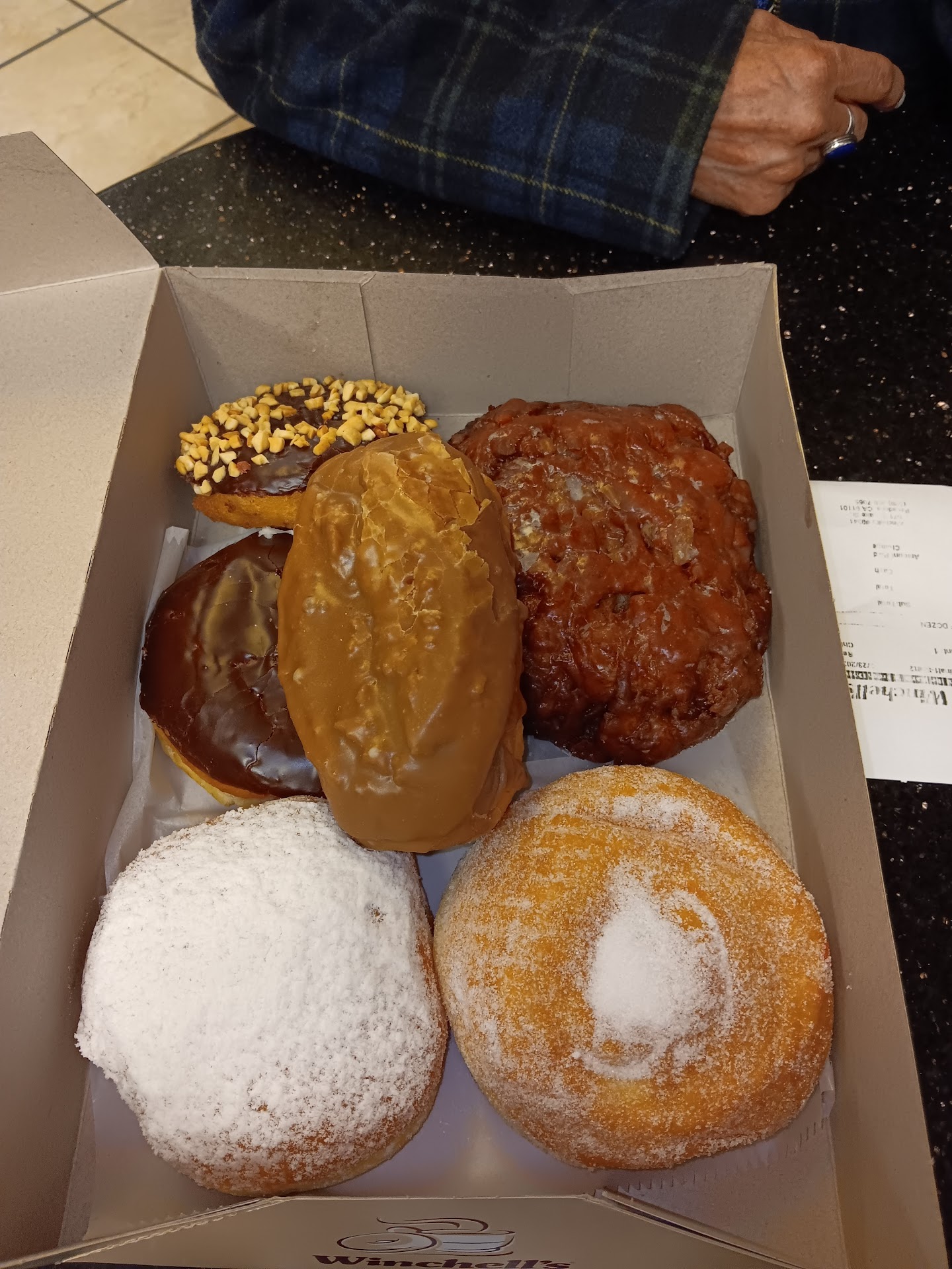 Read moreOpen 24 hours and the service was awesome. A little slow by daytime standards but after midnight with the sole employee being baker, order puller, and cashier. One should expect service t o be a little slow. My friend and I were the only 2 there. And we were in and out in just under 15 mins. In the time we were there the guy behind the counter had the oven go off twice, filled 2 other app orders, patiently waited for us to select our Winchels dozen, and blended my friends drink with perfection. Kudos to him. He deserves more than the tip my friend paid him but unfortunately Apple Pay was not cooperating. I think we were lucky that we were able to get it to...