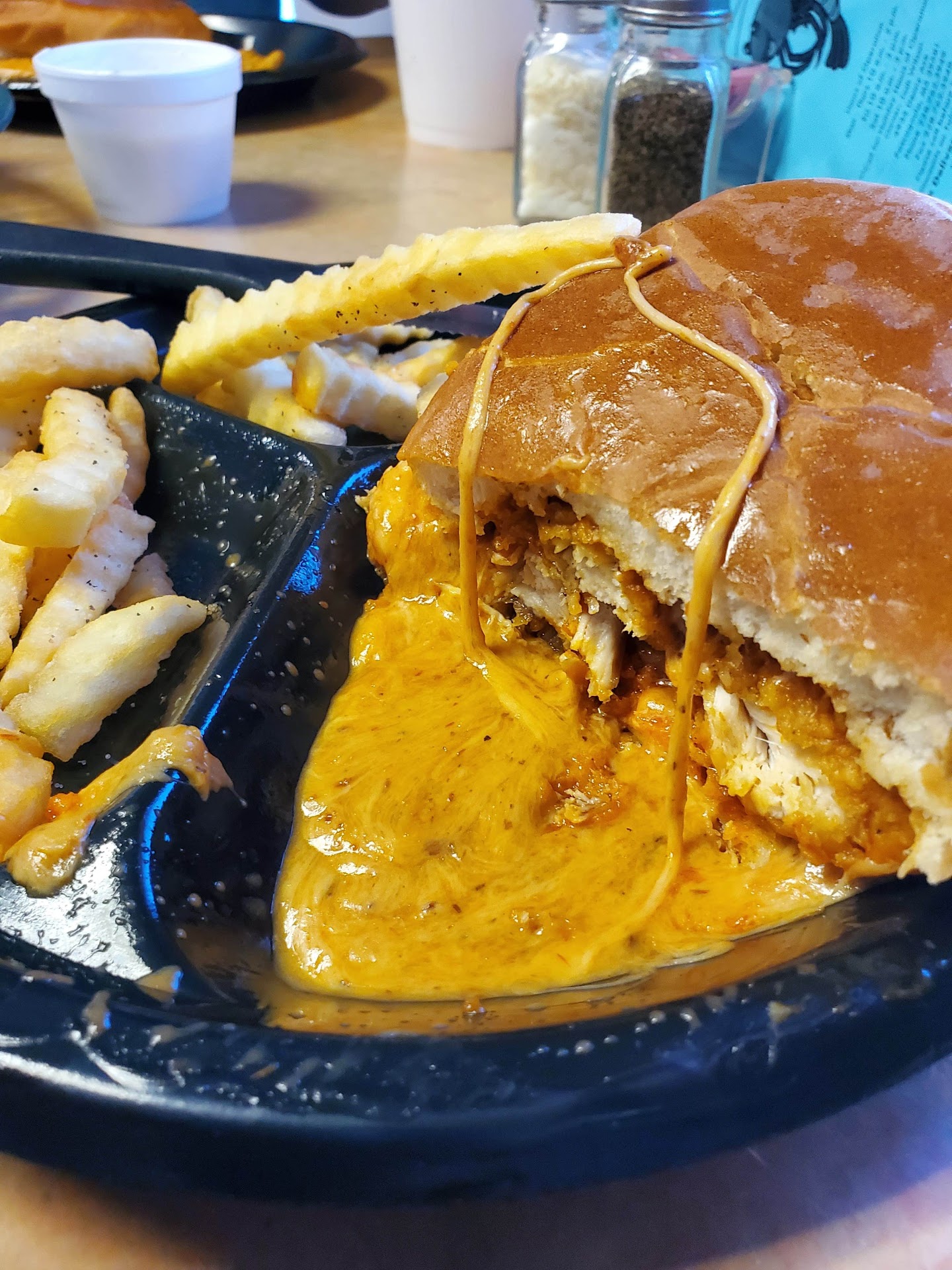 Read moreMy first time here, but my husband loves it here. I would have to say I agree with him! This place is great! I ordered the pizza burger and fried pickles đ. That had to be the best fried pickles I have eaten EVER no lie ! The pizza burger was great. It was so big I could only eat about half ! The rest came home lol. My husband ordered the buffalo chicken pizza burger and fries. Pic of his included. If you are looking for a laided back everyone knows your name kinda place to just sit, talk and eat some good food this is the place! Very nice people own it and work here! They love their job and you can just tell they love the customers as well !! Update went back and have more pics !! Amazing food !! I added photos of the pizza burger and the buffalo...