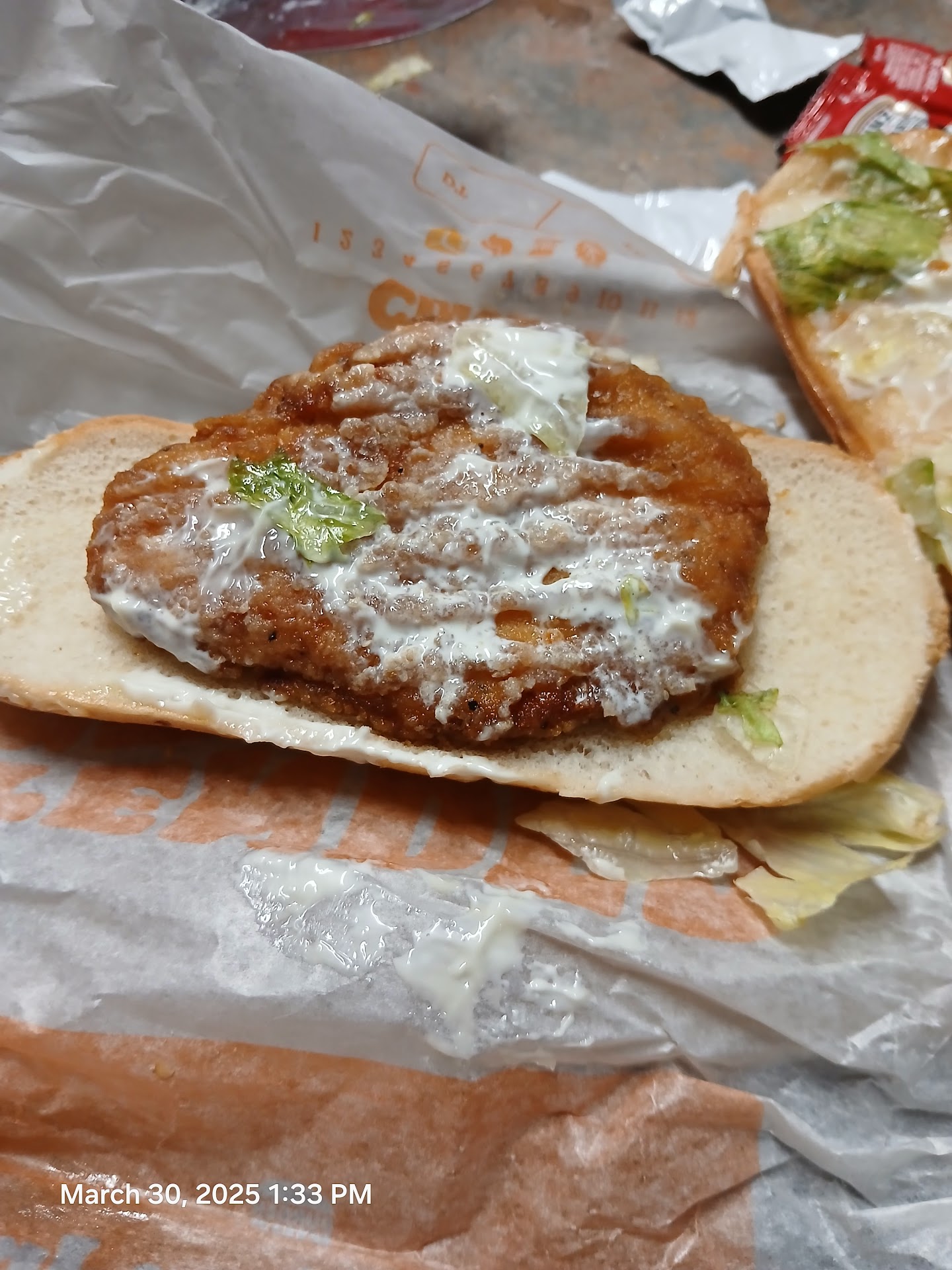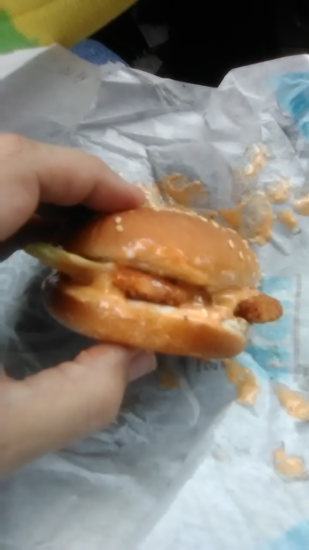 Read moreNot going back again! On this fine day we stopped for and order spicy nuggets, small fries and a spicy chicken sandwich. This was a drive through trip. The young lady greeted me with a "Hello, Hello!". I explained what I wanted and asked for two small waters. She said "We no longer sell water cups, is that all you want?". I said sure and pulled up to pay and get our lunch. I handed the young lady at the window my debit card, she grabbed it from swiped it and grabbed a sack and handed them to me and said "Here is your food" and closed the window. How very very rude! As we pulled away my wife looked in the bag and sure enough, no fries. I pulled back into the drive though. I explained we did not get our fries. The Lady shut the window, and a moment later came back and hand me a sack while she was speaking to someone else and shut the window. Very poor service. We parked to eat quick, and we discovered the fries and nuggets were old and the nuggets were some what wet. The chicken sandwich, well, a picture is worth a thousand words. Stay away...