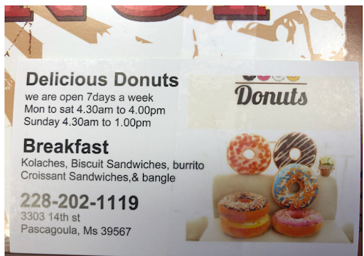Read moreMy children and I were driving past this place and the name Delicious Donuts, sold "them" right away. My first reaction was, it's afternoon and the doughnuts may not be fresh. How WRONG was I! The doughnuts were melt in your mouth DELICIOUS! The person who took our order from the drive-thru window was so pleasant, even throughout our decision making process.🥴 We ordered glaze and twisted doughnuts. If you like doughnuts and you don't try these soft and fluffy, melt in your mouth pastries, you are missing out. My son ordered the breakfast burrito and he loved it too. Great service, great food, and good prices. A MUST...