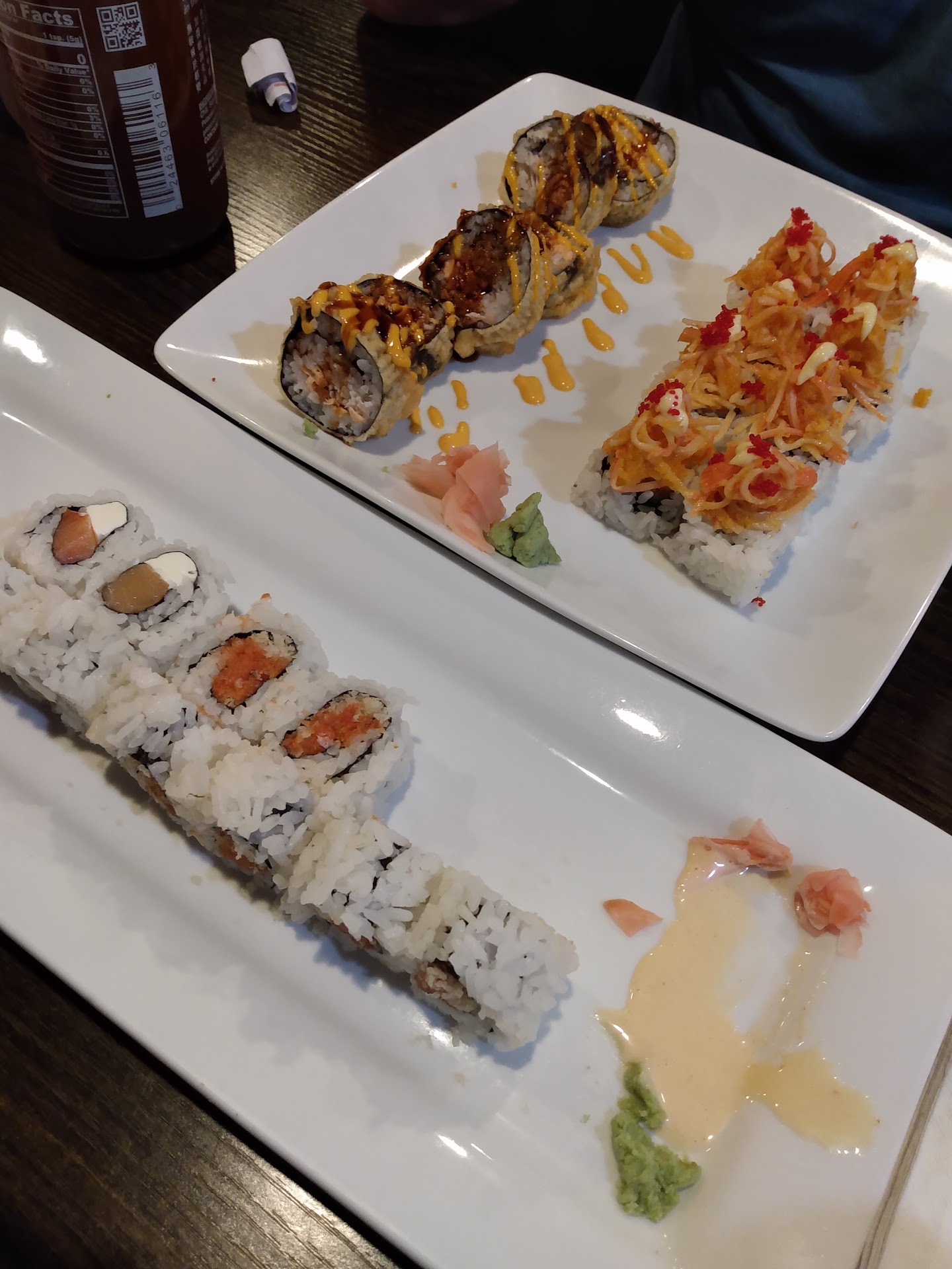 Read moreTook my friend here for his birthday dinner. The big sign outside wasn't lit when we pulled up so we weren't sure if it was open or not at first. First impressions the place looks pretty nice, very clean, no cracks on the chairs or anything, no dusty surfaces. The row of greenery would look more sophisticated if they didn't have printed pictures of sushi rolls in clear jackets like you'd put in a binder tacked to it.