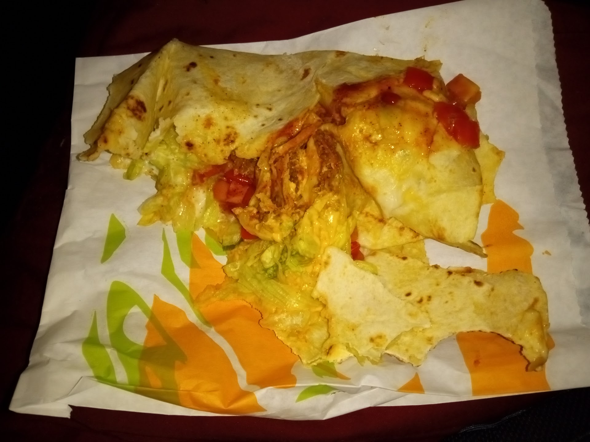 Read moreI ordered three taco bell supreme crunchwraps expecting a proper meal totaling me around 20 dollars. The first wrap tasted excellent, how they usually did, however, after the first the following two had this odd taste; like the sour cream was spoiled and rotten. Tact on those last two the soft tostada shells were oddly hard in some aeras like screwing threw a thin brick layer. I should also note the there was lack of meat, barely a thing inside the last wrap! Mostly just lettuce, odd tasting sour cream. What the hell was going on with your work staff tonight!? God, I can't get the taste out my mouth! Whatever is in the sour cream, throw it out! Either that or the lettuce, both if possible! Thanks for taking my money and feeding me this garbage. Think Imma vomit before I...