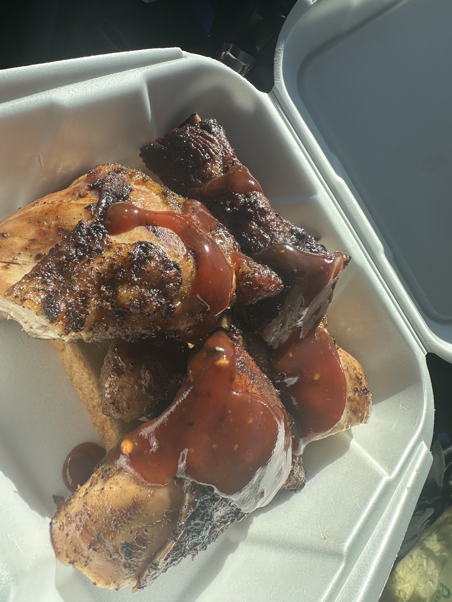 A Fridays only food truck. I've passed it several times on my way out of town, but had not had a chance to stop. I got off early on this occasion and decided to give them a try for lunch. I ordered the ribs dinner and a hot sausage. The sausage was fairly spicy, which I enjoyed. It went really well with the BBQ sauce. The ribs while not too smokey, were still tender and flavorful. You don't really need the BBQ sauce on the side, but I used mine anyway. This side were basic but good. The potato salad wasn't too sweet, and the beans were not just from a can. You get a decent amount of food for the price too. I'll have to try the chicken on the next visit. Takeout only, unless you can't wait and eat...