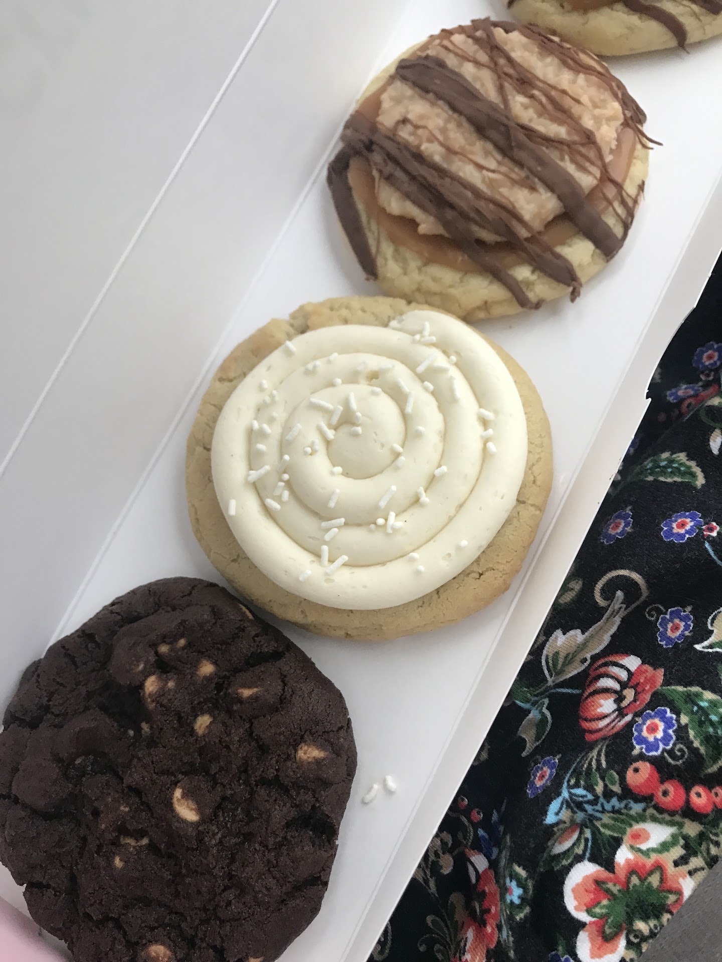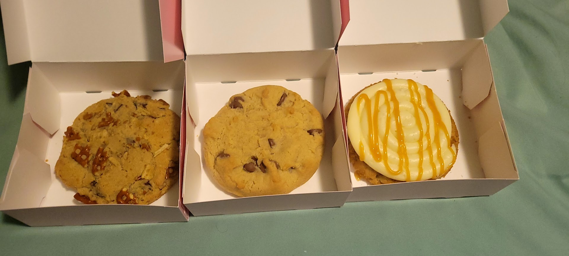 Read moreI was craving some late night crumble, as we all do. Went a couple minutes before closing....rude I know. But the customer service I got, was worse. It started off with one of them visually annoyed with my presence. Then talking amongst eachother about turning off the sign and locking the door. It was 955, the store closes at 10. I'm pretty sure they also gave me raw cookies, I ordered the 3 mini pack. The cookies had no form and fell apart in my hands. They tasted very raw. I ended up throwing them away, waste of 10 bucks. My kids were very disappointed that the cookies were so raw. I really hope they don't treat all of their customers this way. I was very disappointed...