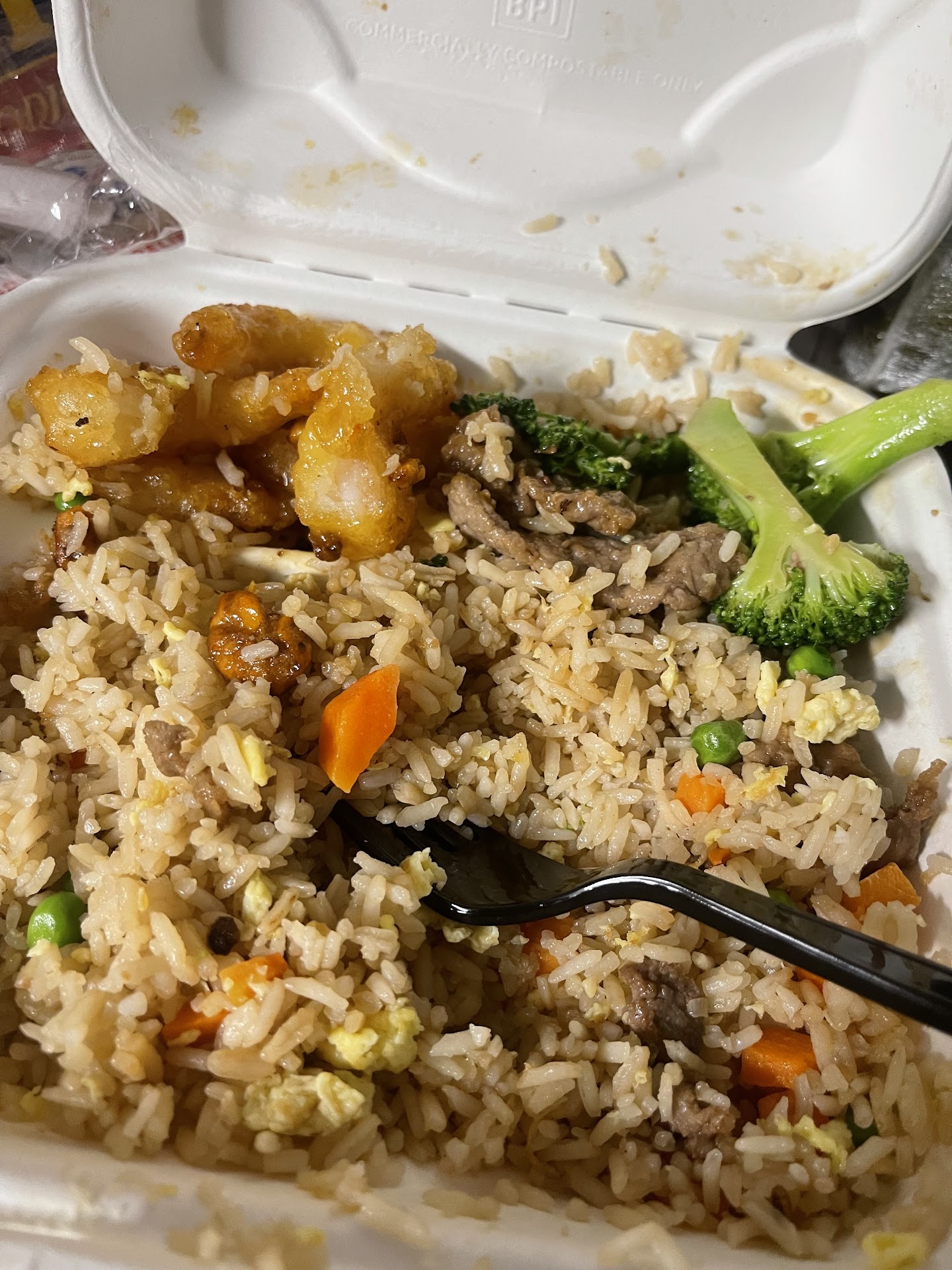 Read moreGuy manager working the line was friendly and had a big smile on his face ready to greet me. My family and i decided to stay in and eat since it was after 12 and the dinning room was empty. Food was good, the noodles looked a lil old and i mostly got veggies. In the middle of us eating. I witnessed the older hispanic cook go into the dinning room for a soda. To my surprise he placed his drink next to him and continued to took food without washing his hands after drinking club soda. This made my stomach hurt and wondered what else could they be falling short on food...
