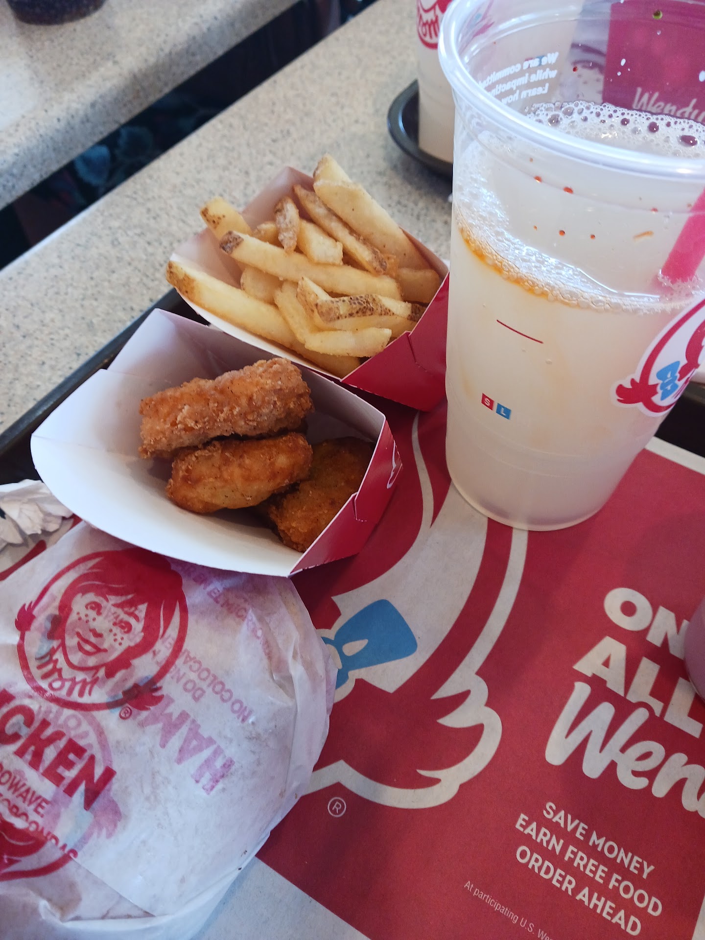 Read moreI've always enjoyed eating at Wendy's due to the fact that they are probably one of the cheapest fast food restaurants that I know of, but also they still have really good quality food. Despite this, this was not the main reason for my review. The main reason for my review is the staff. They were absolutely amazing and on top of things. I was there during the rush hour and I did have to wait a little bit longer than I liked but I was totally fine to wait as the staff were super kind and were working on getting my food out to me as soon as possible. The atmosphere in the restaurant was also incredible. The restaurant itself was clean, and there were many families sitting down and enjoying food together and talking and laughing. If it wasn't for the fact that I had to get to work, I definitely would have stayed and dined in. If you're looking for a great price and a good meal that fills you up, I highly recommend this place. I spent roughly $5 just for myself for an entire meal that I couldn't...