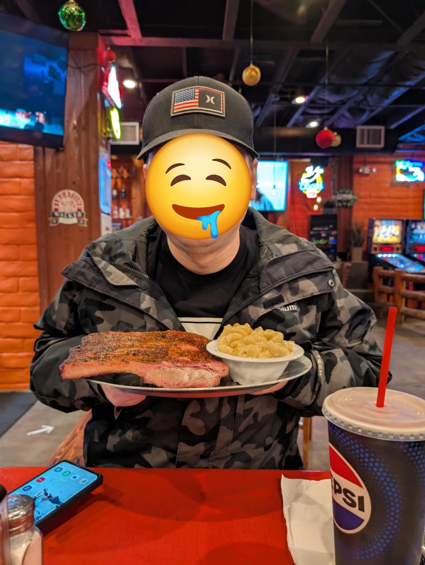 Food: 1) I like BBQ, and I am picky because I have had some darn fine BBQ in my time. 2) Having said that, I would rate this place above a handful of awful places I have been in the not distant past. Dickey’s is worse than here (bleah, just thinking about that place...). It is nowhere near ‘awful’.