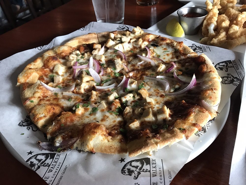 BBQ chicken pizza. I was worried at first as I have a few places I only trust to make this right. This exceeded all my expectations. The BBQ sauce, chicken, onions, cheese, pizza dough... All amazing. The BBQ sauce is sweet with a tiny tiny bit of spice. Onions were fresh, dough was perfect. I will definitely order this again and highly recommend it if you enjoy BBQ chicken pizza.