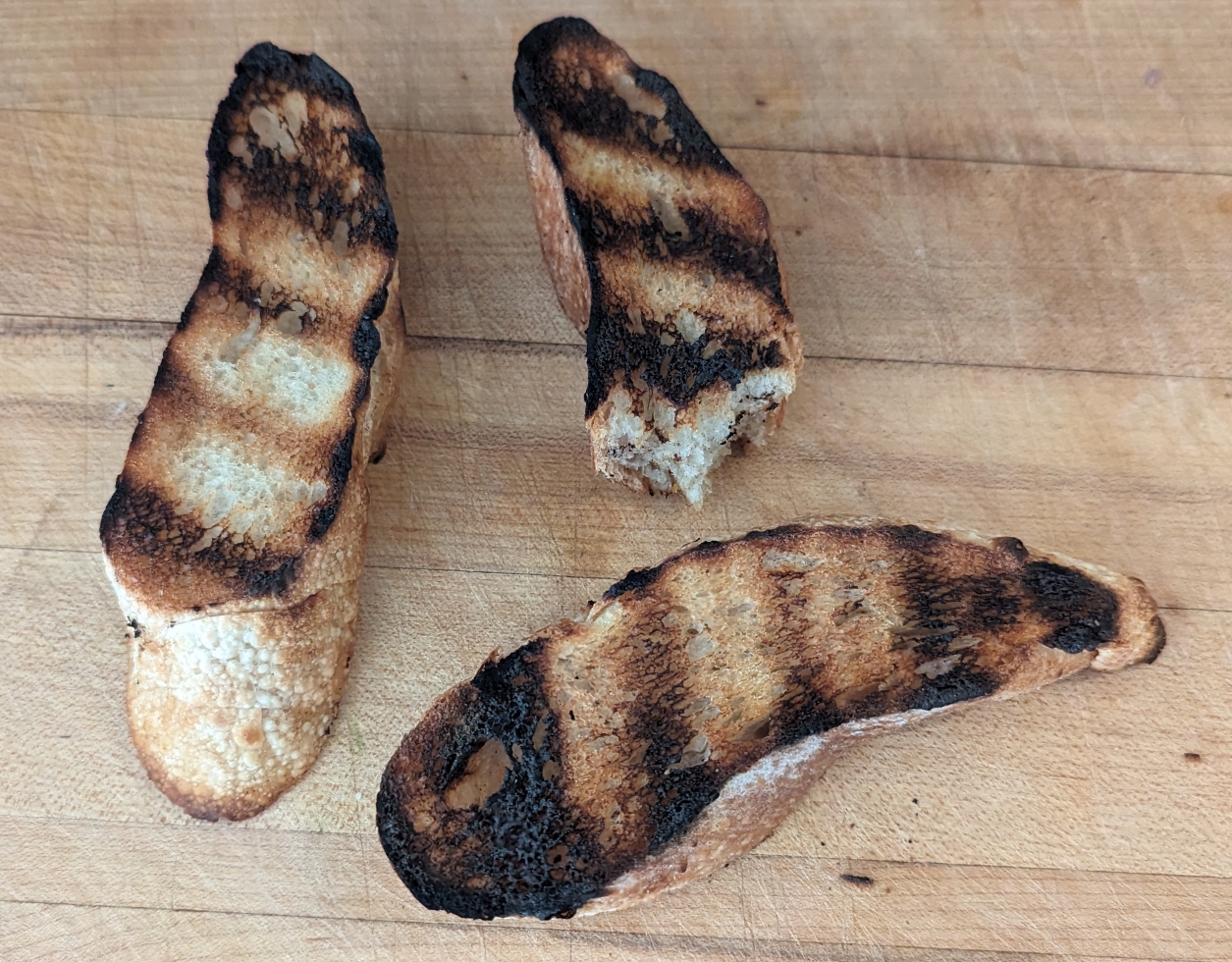 The fried burrata was the disappointment that made us not want to explore the menu further. An overly-generous piece of burrata encrusted in a panko-style coating and deep fried was served atop a dollop of roasted pepper jam and topped with a bit of frisée . Grilled slices of baguette served as an accompaniment. There were multiple issues with this dish, starting with the main element. The size of the portion of burrata was so large that it was excessively hot at the perimeter and exceptionally cold in the center. The panko crust peeled away easily and seemed extraneous to how the dish should be served. The slices of the baguette were lightly grilled on one side, but completely charred on the other.
