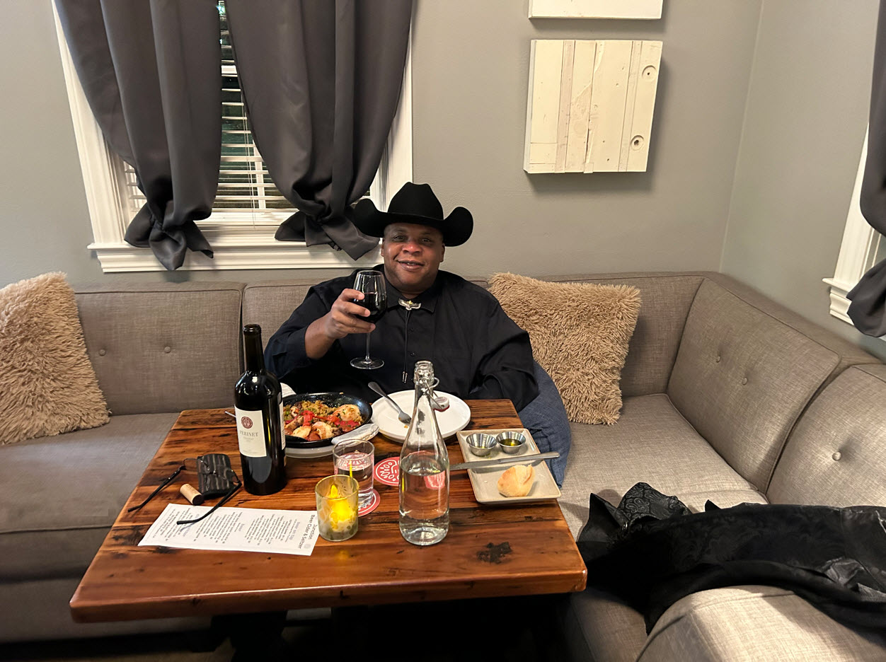 The dining experience at The Junction Spanish, Mediterranean, Latin American inspired Tapas and Wine Bar in Paso Robles was truly exceptional. The selection of the location was excellent, being situated right by the Paso Robles downtown Amtrak train depot station. The selection of this location creates an ambiance reminiscent of a Wild West train station where guests arrive for dinner at a remarkable Spanish-style restaurant. The wine menu features estate selections from vineyards in Spain, Santa Barbara, and Paso Robles. We were thoroughly impressed to find Perinet, one of our favorite wine estates in Spain, included in the wine menu list. Our preferred vintage from Perinet is the 2015 red wine, and the wine menu featured a remarkable 2017 Red Perinet Priorat that perfectly complemented our dinner selection. After entering, we were warmly welcomed by the hostess, embodying the inviting spirit of the Spanish style atmosphere, accompanied by the background music of Spanish-style salsa. The restaurant provides four seating choices: standing tables, standard tables, patio seating and a 12-foot section couch located in the back south end of the restaurant. The seating arrangement on the couch was so comfortable that we nearly dozed off after enjoying the fantastic atmosphere, salsa music, drinks, and food throughout the evening. Our meal began with a tasting of Vilarnao Cava Reserva Spanish champagne alongside Warm La Brea Baguette bread slices, Olea Arbequina Olive Oil, Queso de Cabra, herbed almond biscuits, raw goat cheese roll in Spanish smoked paprika, Mahon cow cheese and Valdeon blue cheese, offering a harmonious blend of sweet, spicy, and earthy notes to start our evening. We proceeded with the Spanish white wine, 2020 Val Do Avia Treixadura, to accompany our second course featuring the classic Empanadas and the traditional Spanish Tortilla Espanola Frittata Eggs. The pairing of this 2020 Spanish white wine with the two classic courses was undoubtedly a top 10 pick. The red wine selected for the third and final course pairing was the 2017 Perinet, a cherished Spanish red wine from the Madrid valley estate in Spain. The Perinet perfectly accompanied the classic Spanish meal, Junction Paella, made with Valencia Rice, sofrito, grilled chicken, sautéed jumbo shrimp, Spanish chorizo sausage, green beans, sweet red peppers, and fresh rosemary. The staff, ambiance, salsa music, cozy seating, extensive wine selection, delicious cuisine, and location were truly delightful and exceptional. This location will be a common gathering place for us, our friends and loved ones in the future. Bravo, and thank you for the...
