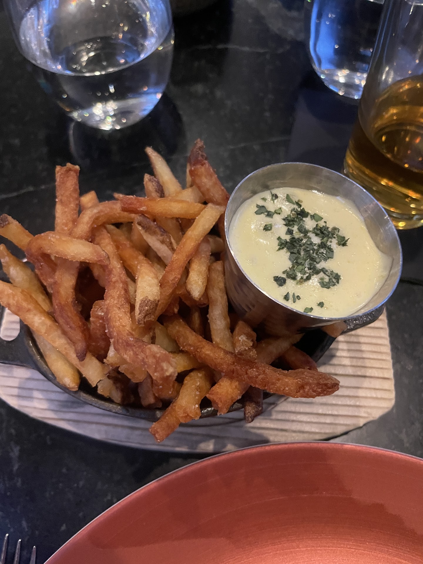Lastly, we had the Moules-Frites and a side of Cauliflower Gratin. The mussels were cooked to perfection and the broth was delish. I practically wanted to drink the magical concoction from the bowl. The fries were fresh cut fried potato, crisp and flavorful. The cauliflower rounded out the pairing beautifully and tasted wonderful.