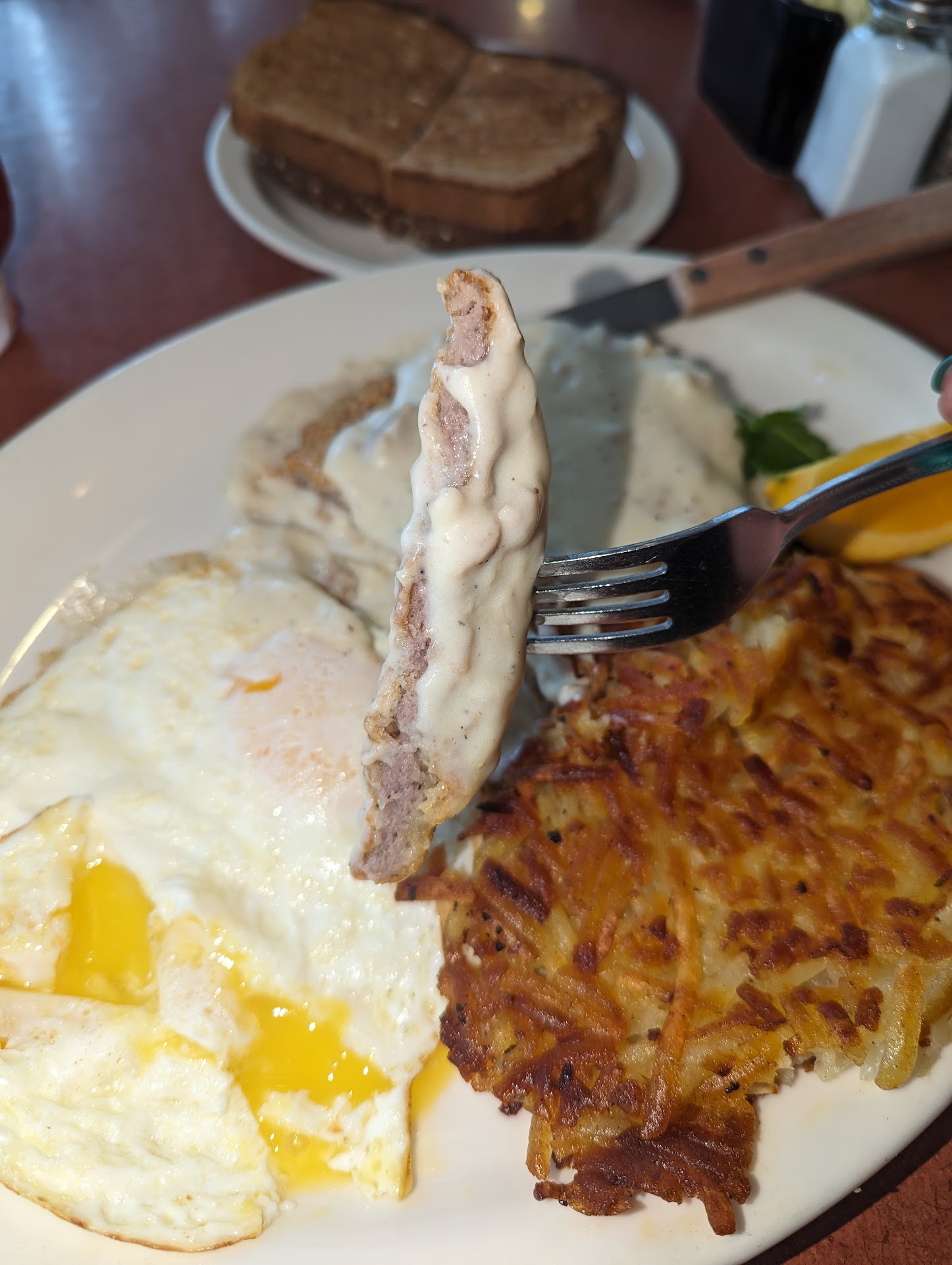 Had to make a quick pit stop in Paso Robles. Decided to grab brunch. Found this diner on Google maps and decided to check them out. There was a little bit of a wait. The guy at reception desk made a comment to his coworkers that weekends are always busy. It was a very cute little diner. You could wait for a table or grab a seat at the bar. We waited no more than 10 minutes. We were greeted and our drink order was taken. Then a couple minutes passed and the waitress came to take our order. I ordered the country fried steak, my dad got the mushroom burger and daughter got bacon and eggs kids meal n I got the churro waffle for us to share. The food was great good size portions. We were surprised at how many mushrooms came on the burger. My dad did mention he wished the mushrooms had some seasoning but still good. I was surprised the churro waffle didn't have any cinnamon or sugar like a churro but my daughter was excited for the ice cream on top. Overall a good experience. If we ever stop in Paso Robles it's definitely worth...