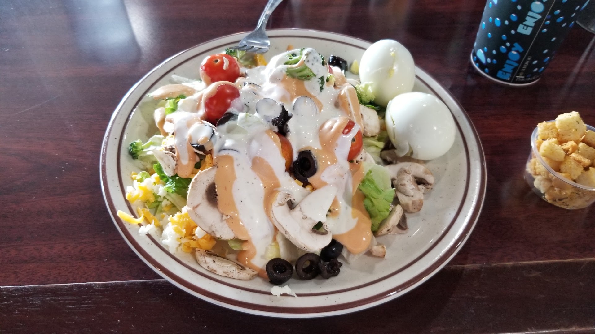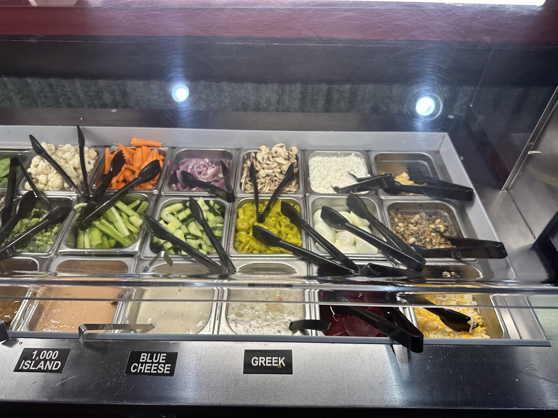 Horrible service... went to get an order to go for my family and the person taking our order had no idea what they even had and we couldn't look at a menu because they didn't even have any. Then we went to get the salad bar and half the bar was empty asked 5 different people and each time they said someone else would fill it had to wait 10 min past we got our pizza for them to put anything out and most of the stuff looked like it had been sitting out all day and that was the fresh stuff they just filled the bar with. Then after we got our food half the order was missing went to ask the kid that took our order he told us we didn't order that had to get the receipt to prove to him we did order it he then said they put the 2 orders together again had to open the Togo box and explain to him that if there was 2 orders there would have been 2x the order of with and there was still only a single order by the time we waited for the salad bar and our full order of food the pizza was ice cold before we even left. All around horrible service considering there was only 5 tables being served and the food was sub par compared to other pizza places nothing special about anything they offer (better food, better service and nicer places to go then having to deal with...