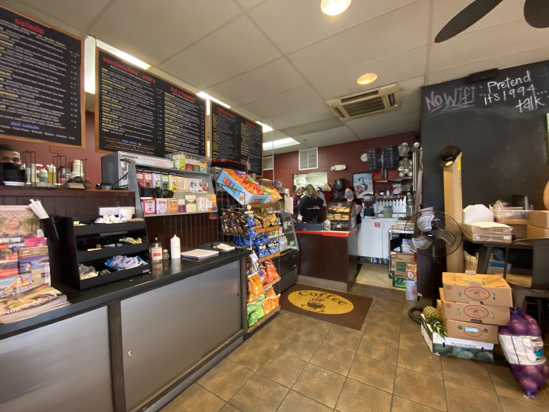 The place is very small I think only a couple of tables inside but the main action is actually outside where they have 6 tables with a view of the park. The fare is from a nice family run deli, Cold cuts are fresh, so are the salads the cheese is not like quite a few places I had a misfortune of visiting, but nice (maybe even artisanal) crumble, coffee tastes like coffee. I mean overall a nice place to have lunch at.