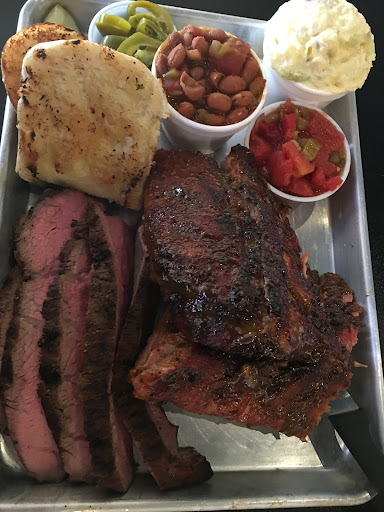 Read moreThe food was decent. I paid 27 bucks for the 2 meat platter and 2 sides. we picked the smoked gouda mac and cheese and salad.(dollar added to have a salad as your second side option) the food came with the 2 meats your 2 sides, 2 pieces of grilled bread and a huge pickle spear. the mac and cheese was very saucy (not always a bad thing ;) but a bit too soft in texture so it was a bit one note. my daughter and I picked the citrus ribs and the tri-tip. We received a good amount of tri-tip and I believe 6 ribs. The tri-tip was easy to cut through and not dry at all but could use more of the smokey bbq flavor (just my opinion) and the ribs were a bit too sweet for both my daughter and I. The bbq sauce options were regular or the sriracha bbq. Both were sweet. The chunky salsa that came with the tri-tip was nice and flavorful! The salsa with the garlic bread and tri-tip was great! I would LOVE to see a vinegar sauce option! The service was excellent. Since it was our first time there we had mentioned how the ribs were a bit too sweet for our liking and they mentioned that next time you can request just the dry rub or one of the bbq sauces. I love that you do have an option. Overall we would love to come back and try again. Going somewhere new is always intimidating but the staff made it warm and welcoming and were...