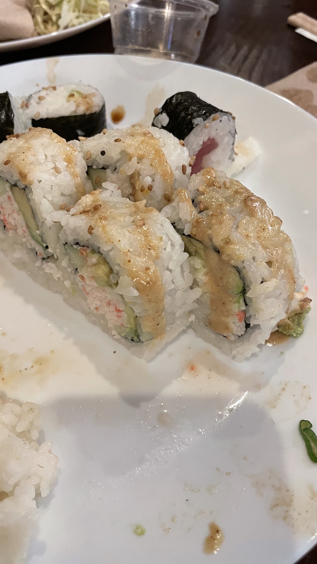 Read moreLacks finesse in their preparation of “Japanese” food. The rolls had too much rice and they put a spicy mustard that needs to go or at least ask the customers if they’d like the house sauce on top. Seems like a spicy mustard from a bottle with sesame oil and sesame seeds. I had to wipe it off all of our rolls with a napkin. M My son got the teriyaki chicken and complained of it being sour. I tried it and it tasted heavily of yeast. I didn’t dislike it, but I could see how an 11 year old might not like it. It wasn’t terrible but I don’t think I’d come back here. My youngest got the vegetable udon and there were a ton of vegetables in it and was probably the best thing we got amongst 5 rolls, a teriyaki and a the udon.