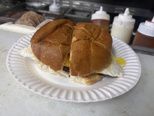 Bagel mediocre at best, not even jalapeño cream cheese on it as ordered. Everything bagel was a few sad poppy seeds sprinkled on it to pass it off as an everything. The supposed “light cream cheese” was smeared all over the tin foil it was wrapped in and had more cream cheese than my plain bagel. Taylor ham had two disappointing see through pieces of Taylor ham between an egg with uncooked cold cheese on a Kaiser not even heated up.