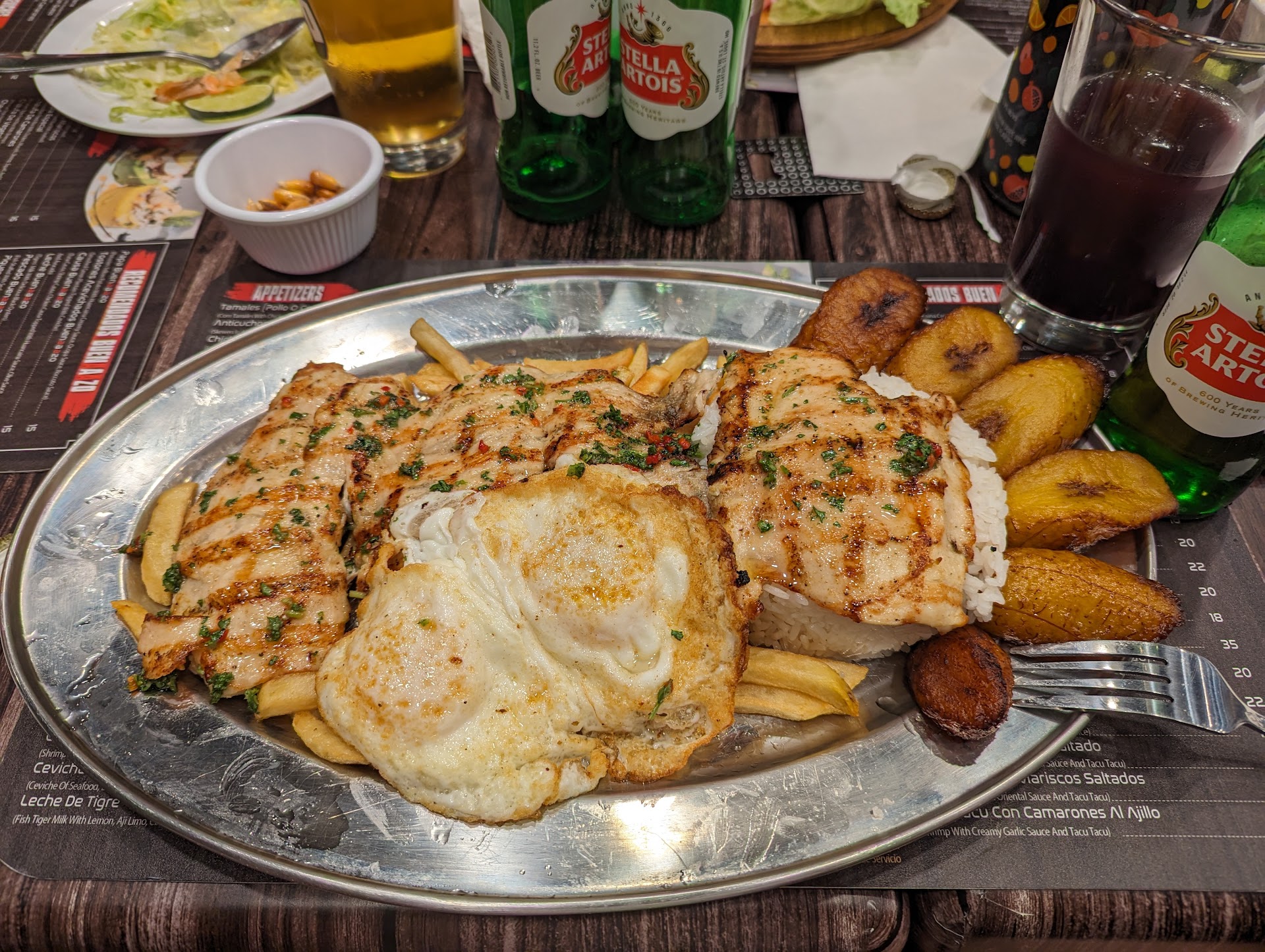 The food however, was great. I got the Pollo A Lo Pobre and I enjoyed it very much. We also got some calamari for appetizer which was good, also came with some pieces of fried yucca. Deliciously prepared with rather generous portions for the price. Unfortunately there was a noticeable break after the first half of entree orders came out. Another 15-20 minutes for the rest of the table to get their plates. My brother-in-law waited a good 30-40 minutes for his plate from the time the initial plate came out. What are these ticket times? Lol