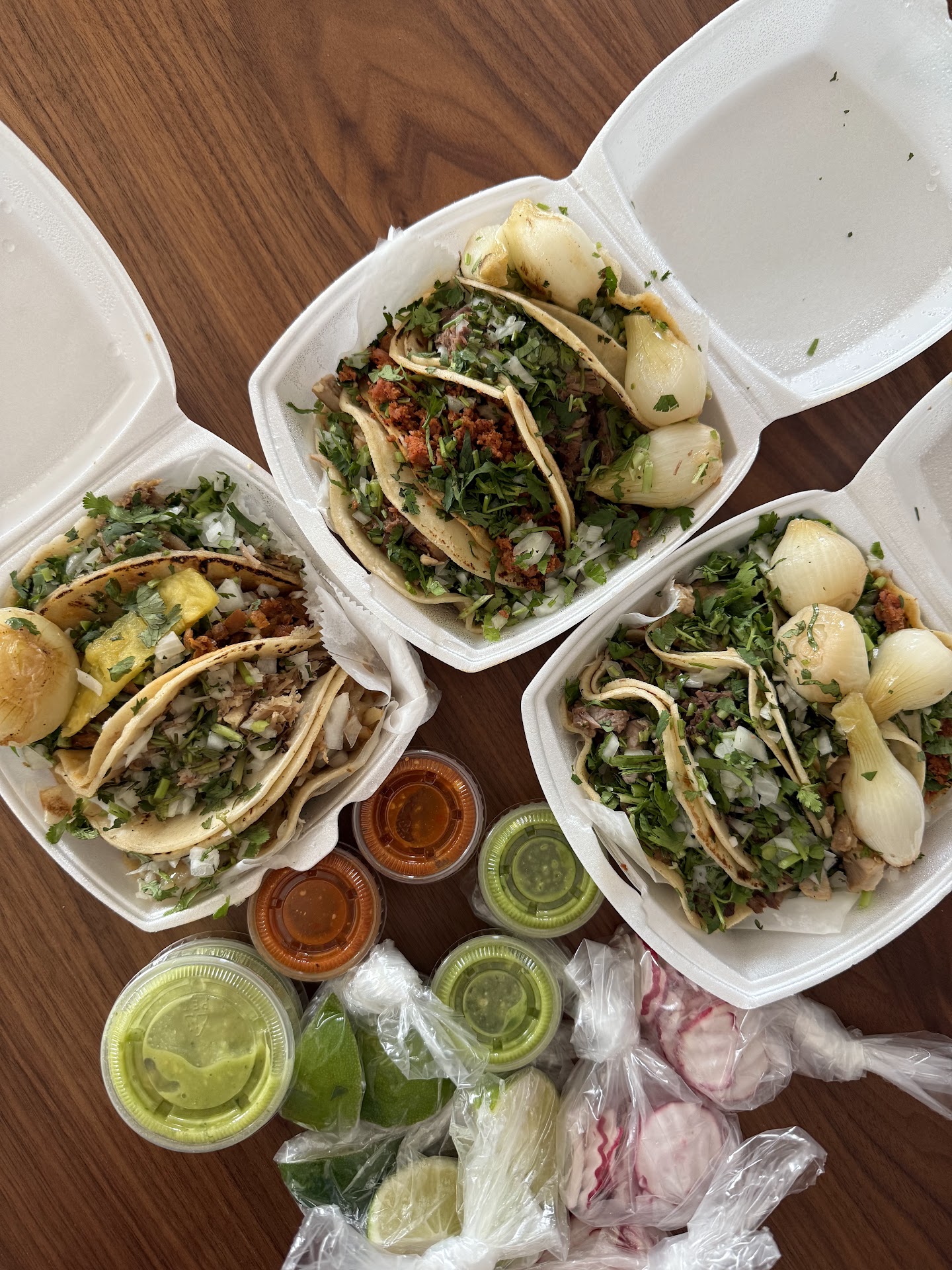 I think I may have just found my new go-to taco spot. They only serve tacos here, so you know it's gotta be legit. That's where they spend all their time and focus. We pretty much tried one of each taco, except the suadero (beef) and the chicken. Hubby went and ordered in person, for takeout. We had lengua, longaniza, tripe, carnitas, al pastor, and pork skin. My favorites were the pork skin, al pastor, and longaniza. There were some that we ordered more than one of but we realized they gave us something else in place of it, so just beware of that. The tacos come with these mini grilled onions. I usually like onions but these lacked any sort of flavor. The salsas that the tacos come with were good, including an avocado-based (?) one. Some tacos didn't need any sauce but some needed an extra little something and the salsas were perfect for this. They serve radishes on the side, which I usually don't eat because they're bitter but they were actually fresh here.