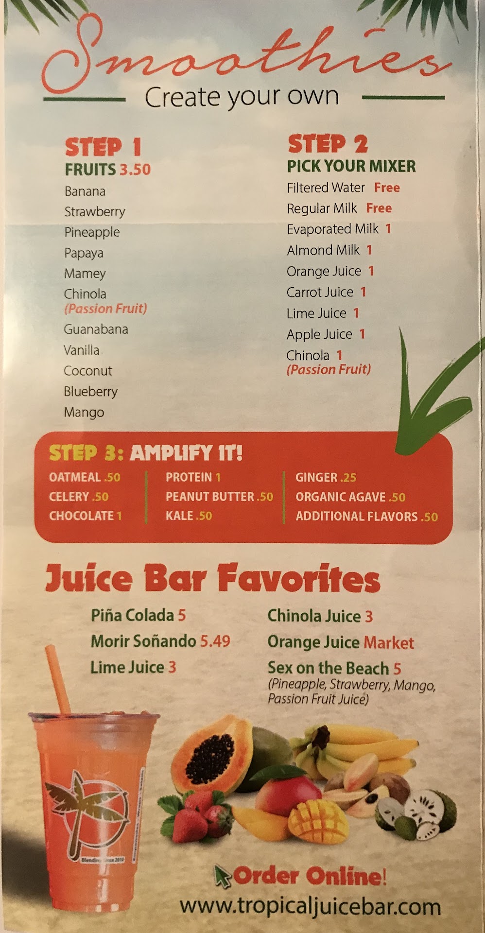 Ā Ā Ā Read moreThe place is for a quick bite to sit or take out. Juices and shakes are great I always go with the papaya. There is a special of Fried chicken with French fries for less than $5 and the portion is really good. The sandwichās are tasty and a few options, Mofongo is good as well. Everything I have tried so far has been to my taste. The staff is well trained which reflects on the good costumer service. Try it you...