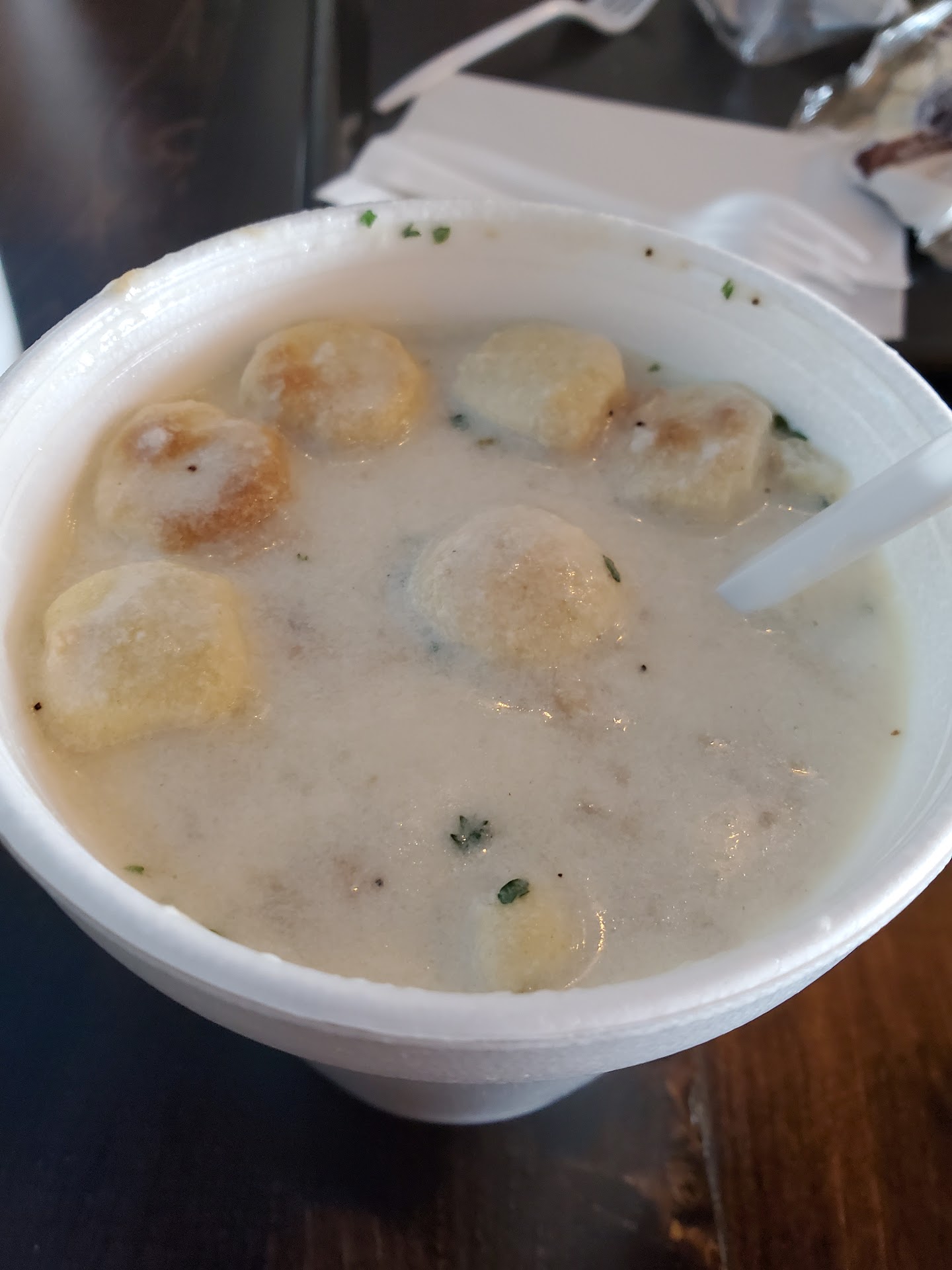 Read moreMy husband and I came across Rusty's by pure coincidence when his stepbrother had his 50th party there last year. My husband had been to their old location, but not to their new location since they moved. This was my first time ever. It was quaint, yet inviting and the menu was quite extensive. I was quite excited to see that they had clam chowder, so I ordered a large size - it was only $5. I thought that was quite reasonable. My husband ordered the large fish basket, which comes with 3 pieces of fish, fries and two hush puppies. You can have it with or without tartar sauce. When they ring up the order, you can choose to leave a tip or not, as the girls there do bring out your food when it's ready. We usually tip 20%. We usually get 2 large drinks (Coke products) and our total with tip is around $21. We usually go about every other weekend and dine in. Only once have we carried out and it was quick and the order was correct. This time I ordered a small diet Coke and order total with tip was around $18. I forgot that sometimes my husband get a small side of coleslaw ($21 total with tip). Love their clam chowder. We go in there so often, they know to give me extra oyster crackers for the chowder.😊 It has lots of small pieces of clams, creamy texture and you can see the steam coming off of it! Delicious! It's is very filling especially with the crackers, but it is so good. It keeps me coming back all the way from close to Reynoldsburg. My husband likes the big fish basket and usually doesn't even finish the fries, he's so full from the fish. The restaurant is clean and there are big, wood tables and chairs to sit at with different sizes to accommodate couples or families. It's well decorated and the music isn't blaring like in some restaurants. The staff is friendly and approachable. I think there is no comparison to chain seafood restaurants. This is definitely a...