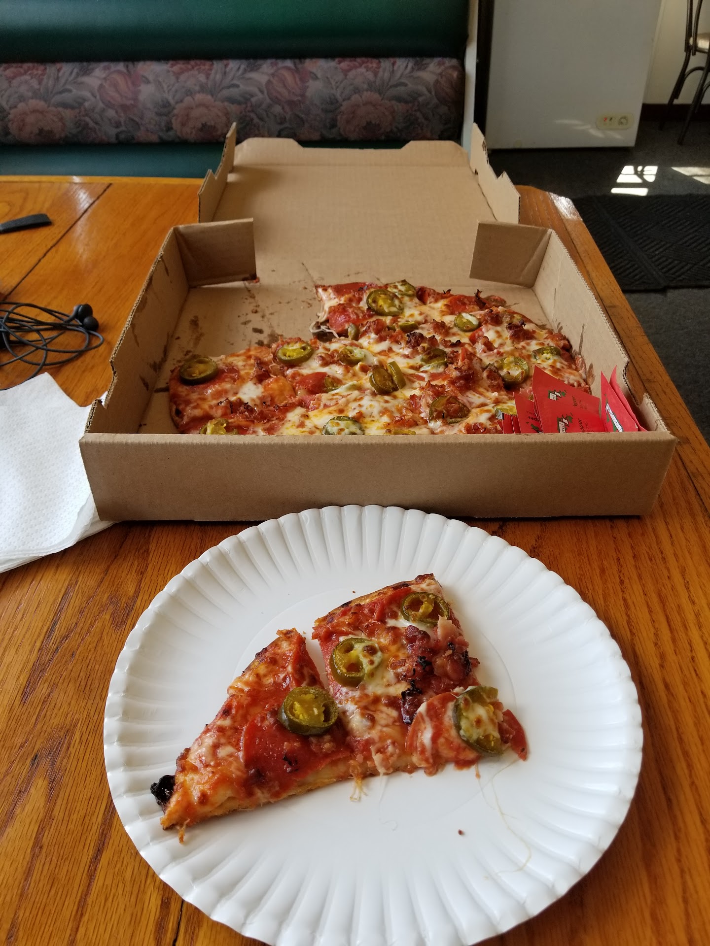 Read moreRe-opened under new owners and initially we had a wonderful experience every time we've ordered since the original owners retired. However, tonight I had to repeat my very simple order (12" 5 meat w/pineapple, 12" black olive & green pepper) three times. When my husband arrived to pick up the order one of the pizza's was completely burnt, there was a worker walking around eating pizza, and another looking around like he wasn't sure how to make pizza.