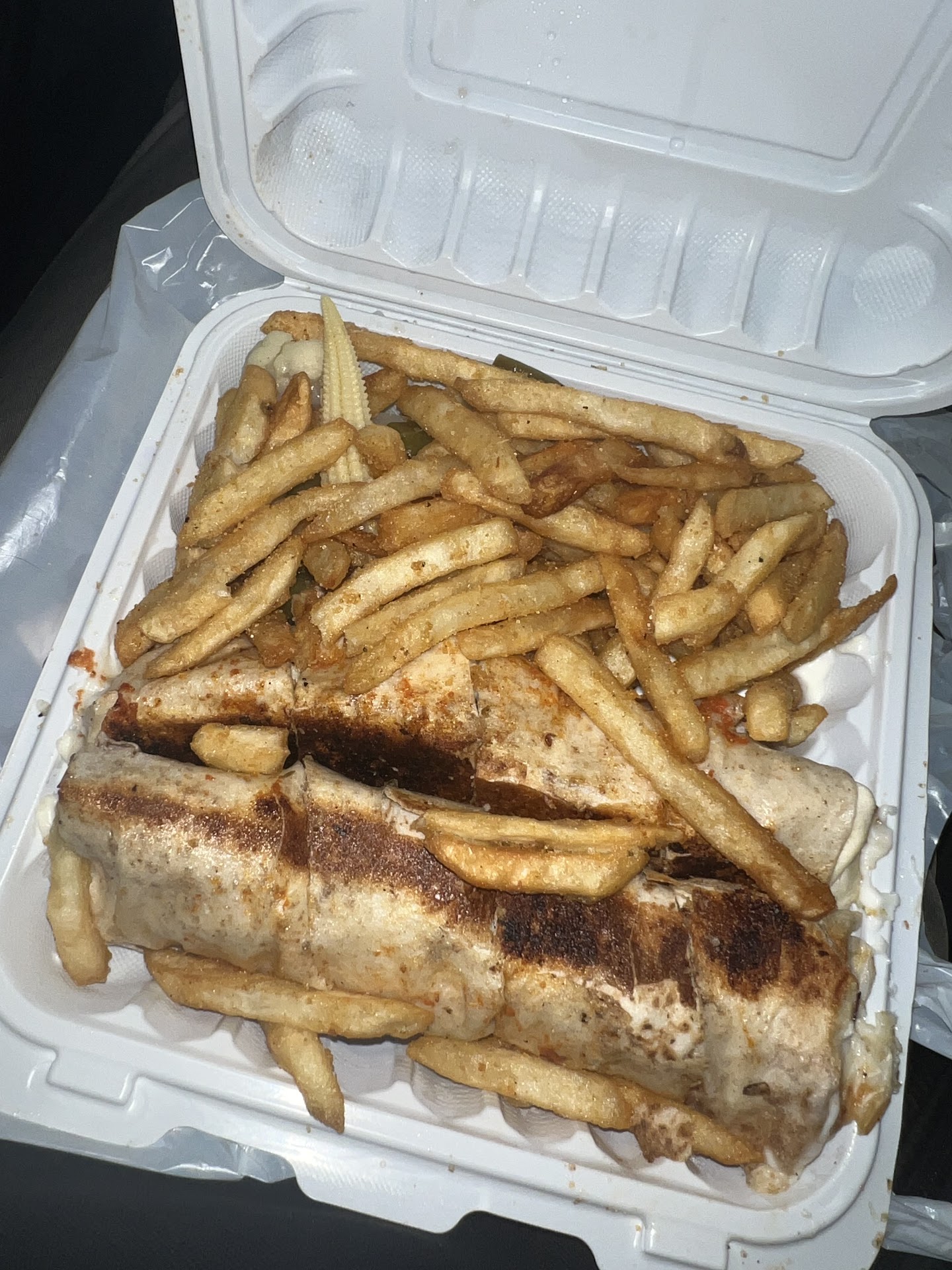 The sandwich is excellent but you may want to order two, or bring some friends and have them make you a platter of these cut up and served with the white dipping sauce as I've seen in other yelpers photos from here. I filled up on one but I've seriously gotten used to smaller portions in 2016 (lost over 50lbs).