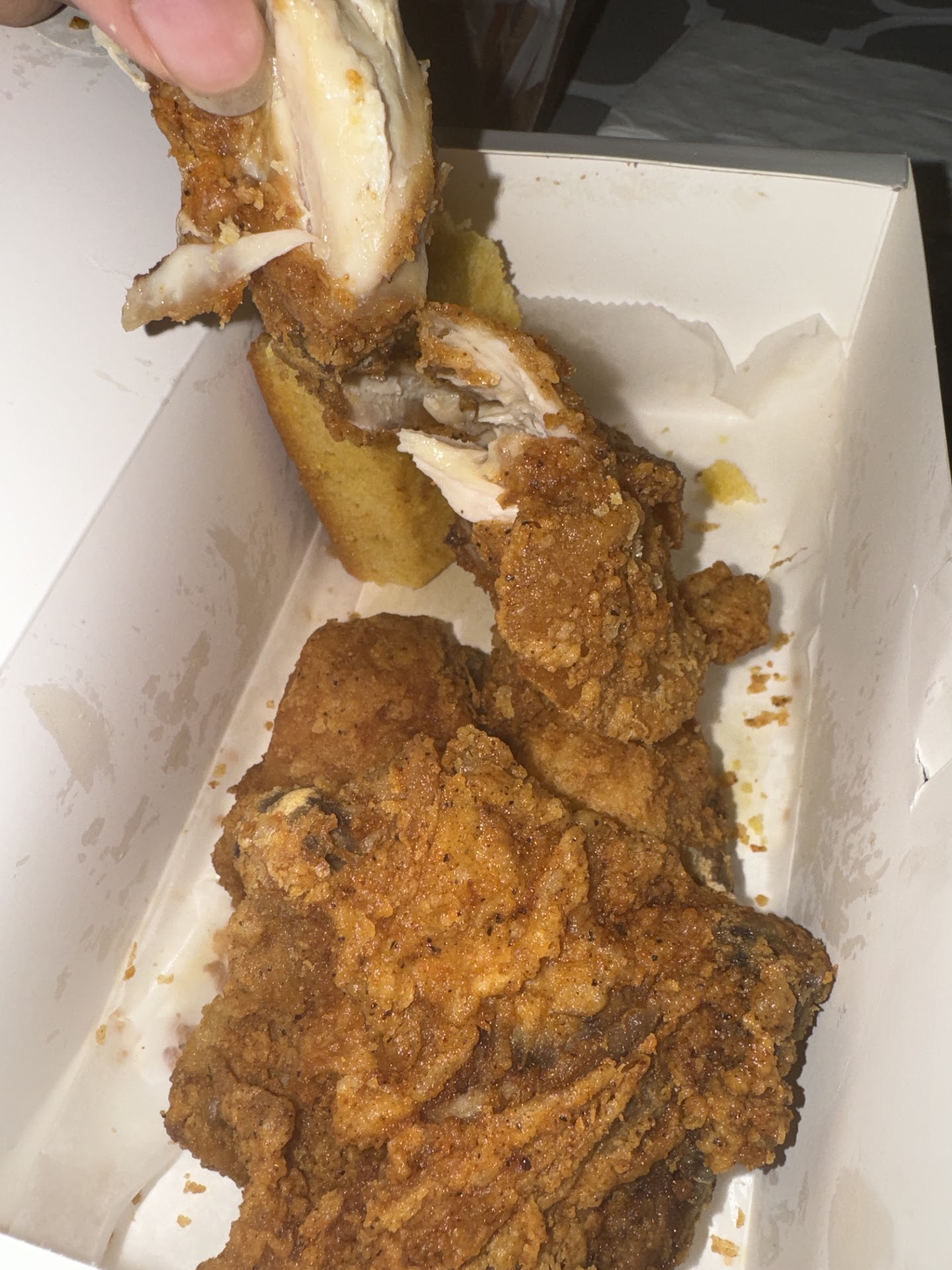 Read moreIf you like fried chicken, this is the place to go. It's always freshly made including their sides. The chicken has a nice crisp and every bite is so moist. I always get their mash potatoes with extra gravy bc it's not too thick or like the one you would get at KFC. The mash is smooth and the gravy seems like its more of a chicken gravy and it goes perfectly with the mash. Also their slaw is amazing. One thing my hubby loves, is that you can choose between rolls or cornbread for your other and we go with the cornbread all the time. Its delicious. The staff is very friendly and the place is always clean when we go. One thing for sure, it does get crowded and very busy especially on weekends. Its available on uber eats so that's definitely a plus for me bc i can now order it and have it delivered directly to my house in...
