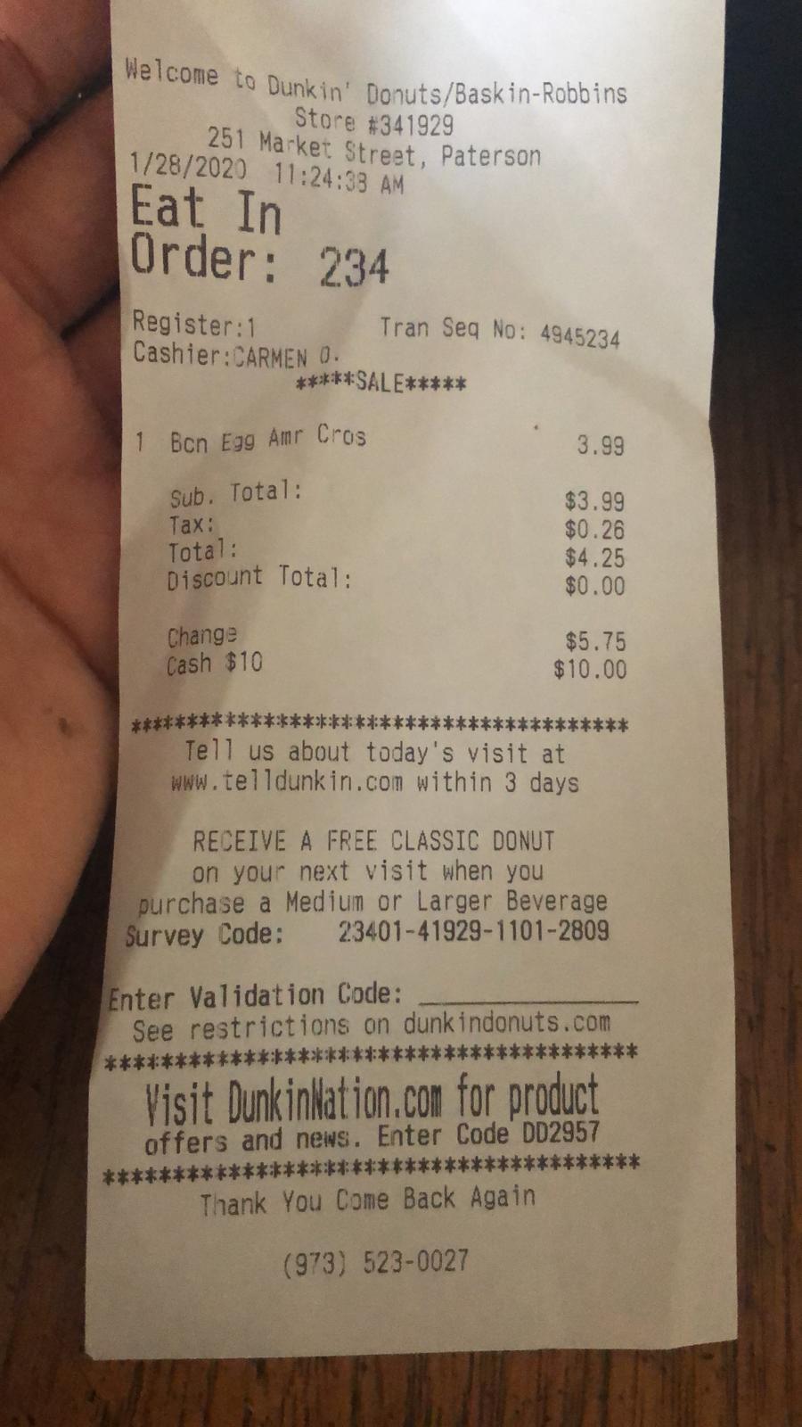 Read morePlease do NOT come to this location. Every time I order on the DD app and pick up in the store, it’s always “We don’t have that” and I end up waiting for something that I didn’t want because my items are unavailable. They just aren’t friendly and acts as if it’s MY FAULT they never have anything in this store that’s on the DD menu. Also, the coffee is ALWAYS burned. I’ve been here three times because it’s convenient, but never again. You’re better off just going to the one on Route 3. 590 Route 3 West in Clifton. This location needs to be shut down. If I could give zero stars, I...
