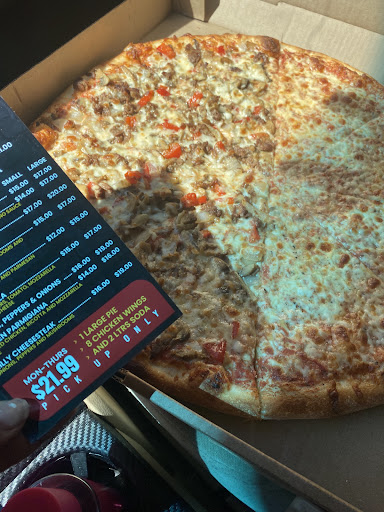 When I arrive to the store I also order two bottle of juice since my pizza was 12 dollars ok my thoughts were with 20 dollars I can cover everything, so I when to the register and I ask for my pizza the manager already knew about the pizza but he didnāt know the price of the pizza which itās weird cause you are the owner the he started to be back and for with another lady asking her for the price she said 17 ok the proced to process the payment and ones again the lady comes and tell him o no way itās 19 which 19 itās the whole price of the cheesesteak pizza and it doesnāt makes sense to me so I ask them again why they are charging me for a whole cheesesteak pizza when they are giving me half and every pizza comes with cheese, so the owner proceed to say o itās because itās the same and I proceed ask for the price of the cheese pizza and they said 12 dollars Broo at that point I was so mad that a left. Plus no napkins no...