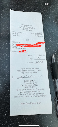 And now for the biggest issue: they overcharged us. I signed for $160.98, and as I always do, I took a picture of the signed receipt — thankfully. When I checked my bank, I saw that $168.98 had been charged instead. An $8 difference may not sound like much, but it’s the principle. I immediately called the restaurant. The man who answered first asked if I paid with a credit card, saying they add a 3% surcharge (which, frankly, is another issue worth noting — restaurants shouldn’t pass on card fees to customers). I told him I used a debit card specifically to avoid that fee.