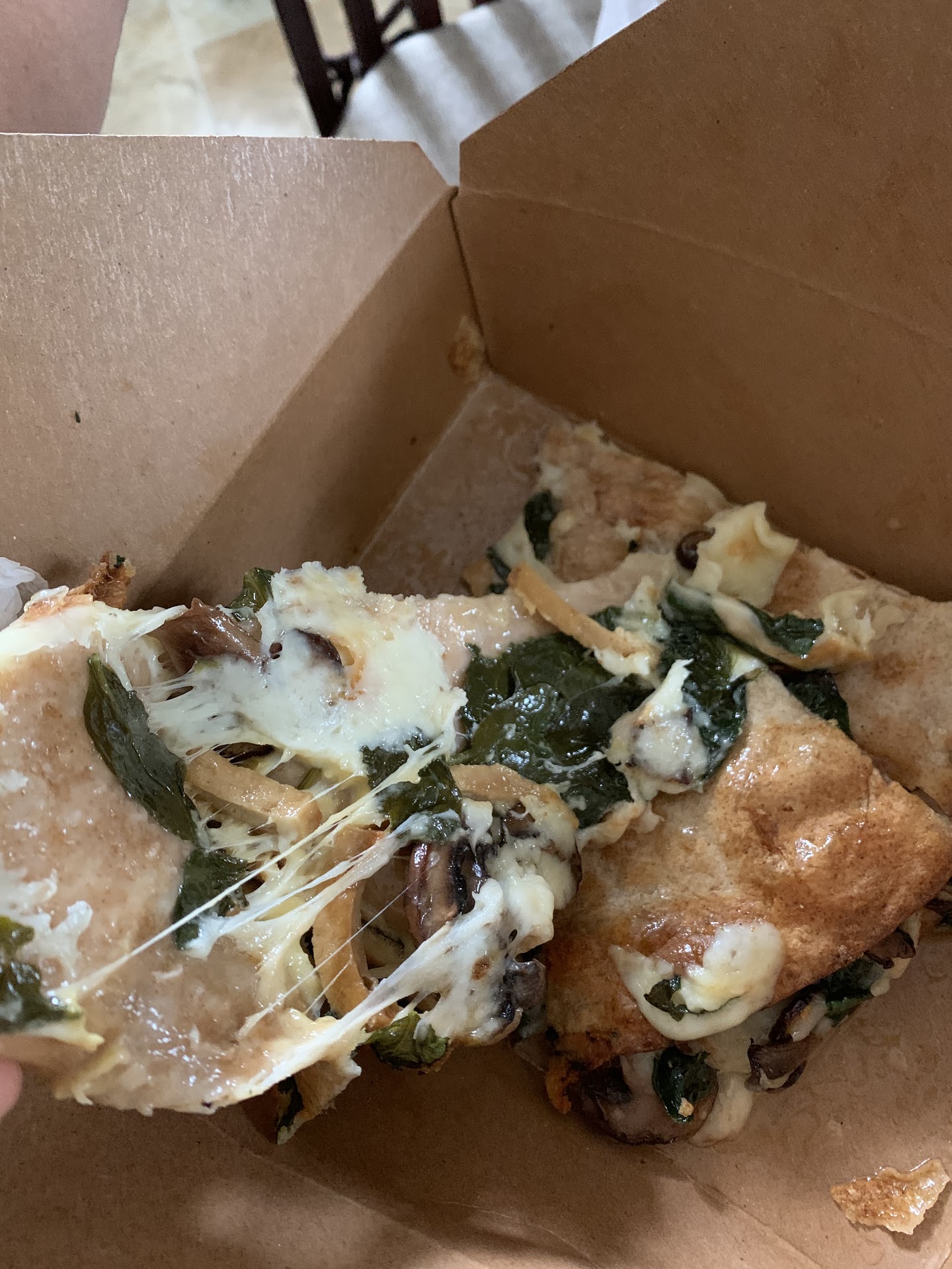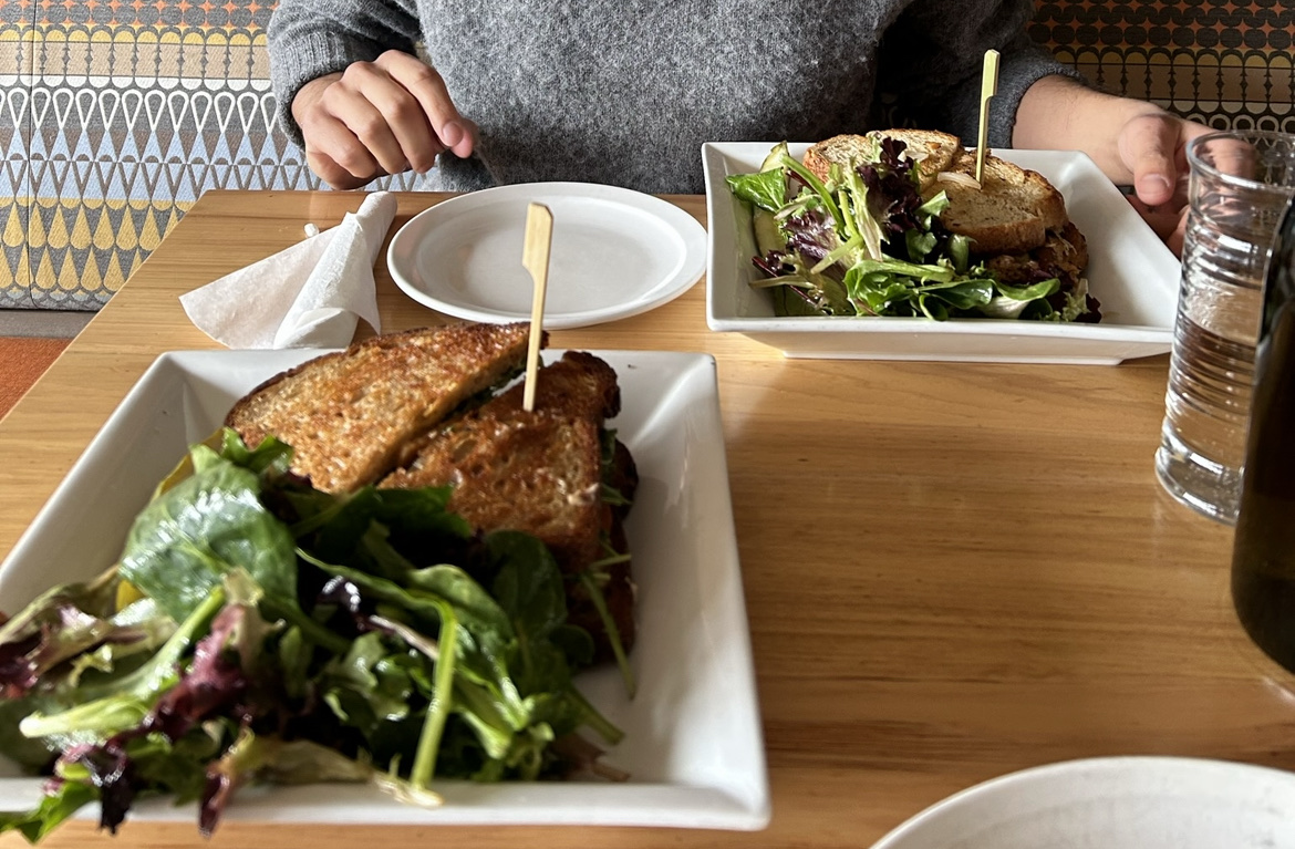Read moreWe visited for the first time on a Friday night around 7:30 and were told there was a 30 minute wait for 2. We headed over to the Wild Flower, owned by the same people and were offered free coffee but got juice and a pasty instead. It felt like less than a 30 minute wait but I didn't actually time it. Once seated, food took longer than I would have liked to come out (I was starving before we even left home to go there) but it wasn't longer than I'd wait anywhere else. I got the butternut squash quesadilla and my husband got the saitan rueben minus the cheese. He was amazed at how "real" it tasted, meaning like an actual rueben. We both had enough food to take home left overs (love that). Our waitress and bartender were both super nice, friendly, down to earth. We were offered and accepted dessert on the house, Pumpkin Cheesecake. I'm eating it now and it's creamy but much lighter than typical cheesecake. I dig it. Last thing I can think of to comment on is the atmosphere. It was cute, cozy, had cool lighting decorations, but poor barstools... not very sturdy and not much room for my legs under the bar.