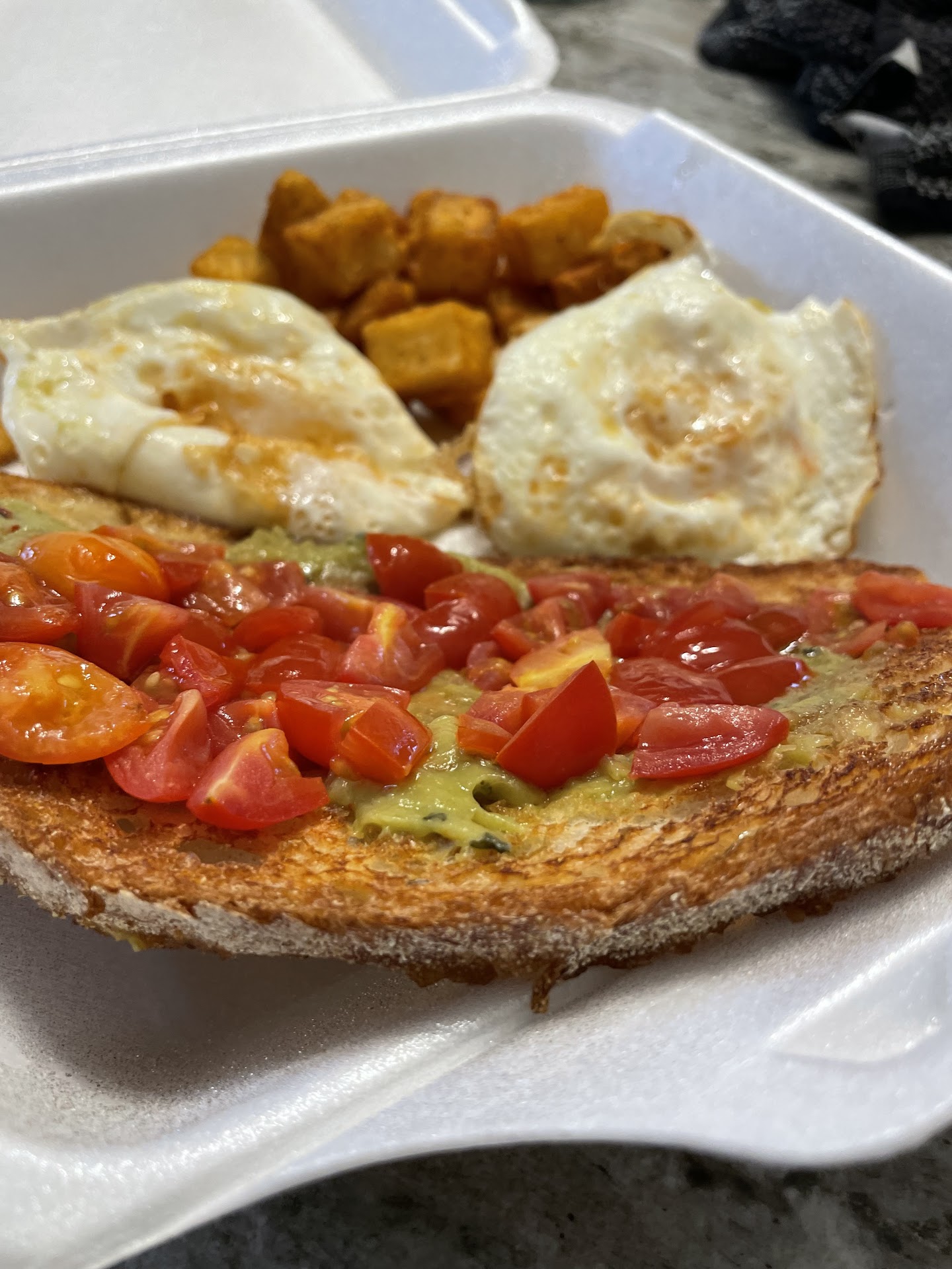Read moreMy first experience here was ok, but todays experience was rough. I confirmed complimentary coffee (listed on their menu) would be ok with the two meals I ordered, but somehow was charged for them. I thought the price seemed high, but I wasnât arguing over a six dollar mistake. Also wouldnât have minded paying if I didnât also confirm on the phone as complimentary. However, the real disappointment was opening my container to see this. There was barely a sliver of somewhat browned avacado on my open faced Avacado sandwich. Itâs also extremely acidic and seemingly premade which is all fine, but add it all up and not only was I over charged, I couldnât actually eat the meal. I am happy to support small business, but I hope this place either elevates this dish or takes it off the menu - itâs not worth the price. And take the complimentary coffee off the menu unless you add that itâs not valid for takeout or whatever...