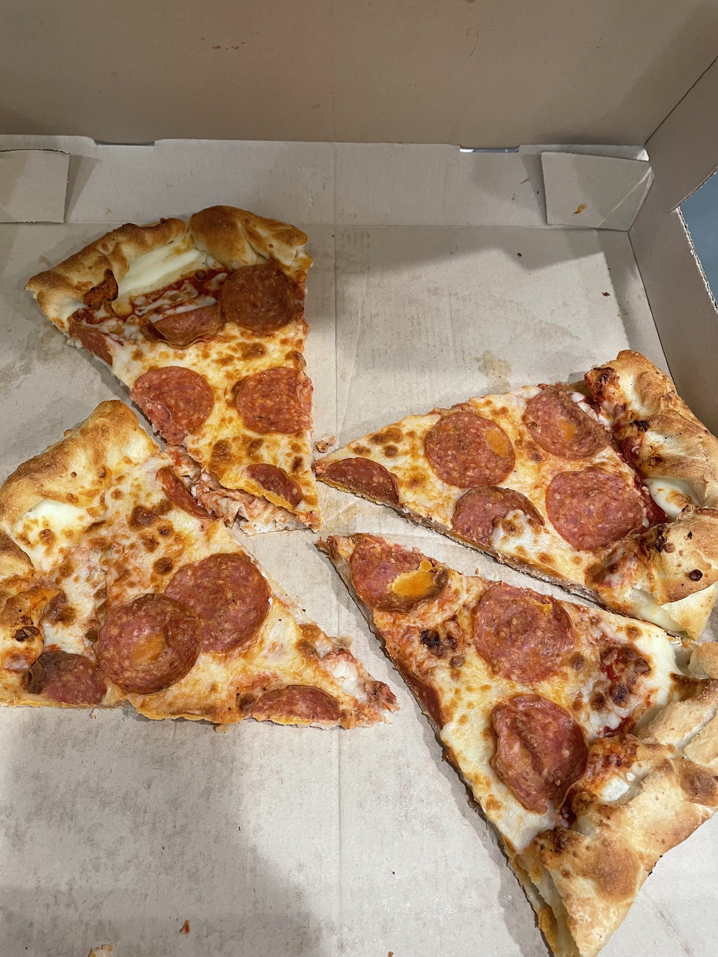 Read moreTheir customer service is HORRIBLE. How did they have me there for 15-20 mins. So at this point I've already watched her ignore every customer walking in. It's like 5 different customers in the place she is literally making their orders one by one so I ask her "how much longer" she said 5 mins so I asked for my money back bc Ive already waited enough so she goes and grabs me a bag of "crazy bread" mind you, I ordered CHEESE BREAD! So I ask her "what's this" she said WHAT YOU WANTED, THE CRAZY BREAD. I said, "this is not what I order, I paid for cheese bread" so she turns around and grabs one that was sitting there when I walked in to give it to me. So I let her know I did not wait 20 mins for some bread that had been sitting there so I wanted my money back. Guess what? I didn't get my money and if it was up to them without what I paid for either. Smh I called the supervisor bc it's not about the money, I work at a Boost Mobile store and ran a Metro store for 3 years. It's the service I got that pissed me off. So guess what? I'm spreading the word and calling corporate if the supervisor doesn't make up for this stupid experience. BTW, I PAID FOR THE MOST MOST AND ONLY GOT EXTRA PEPPERONI. U can see the bread through the little bit of cheese. Smh they're...