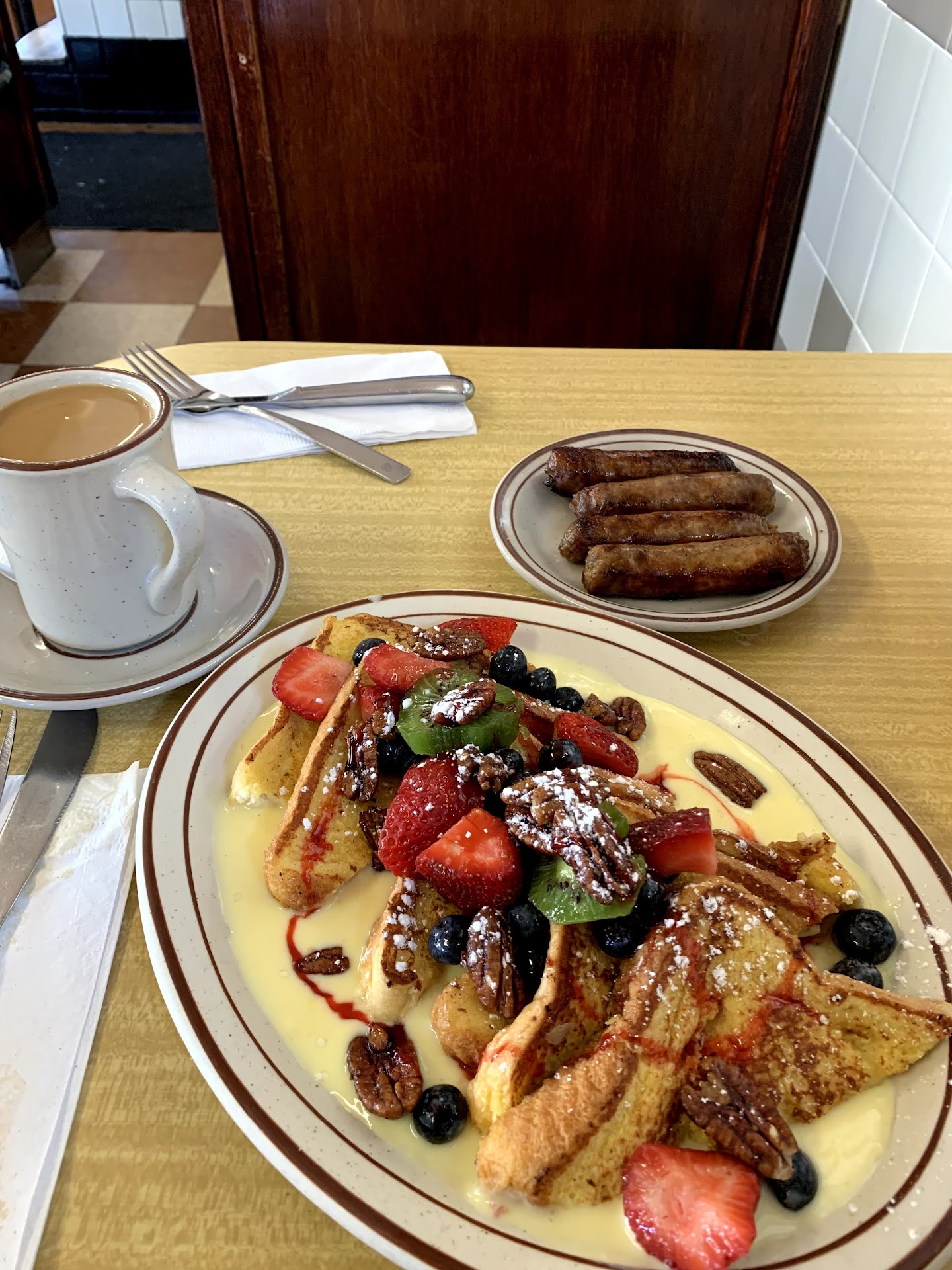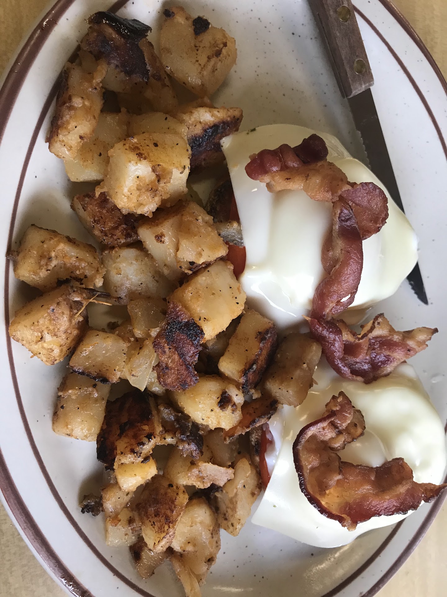 Onto the food, the eggs benedict was pretty good, also large portion. Coffee milk was fine but a little sweet. Endless refills though.