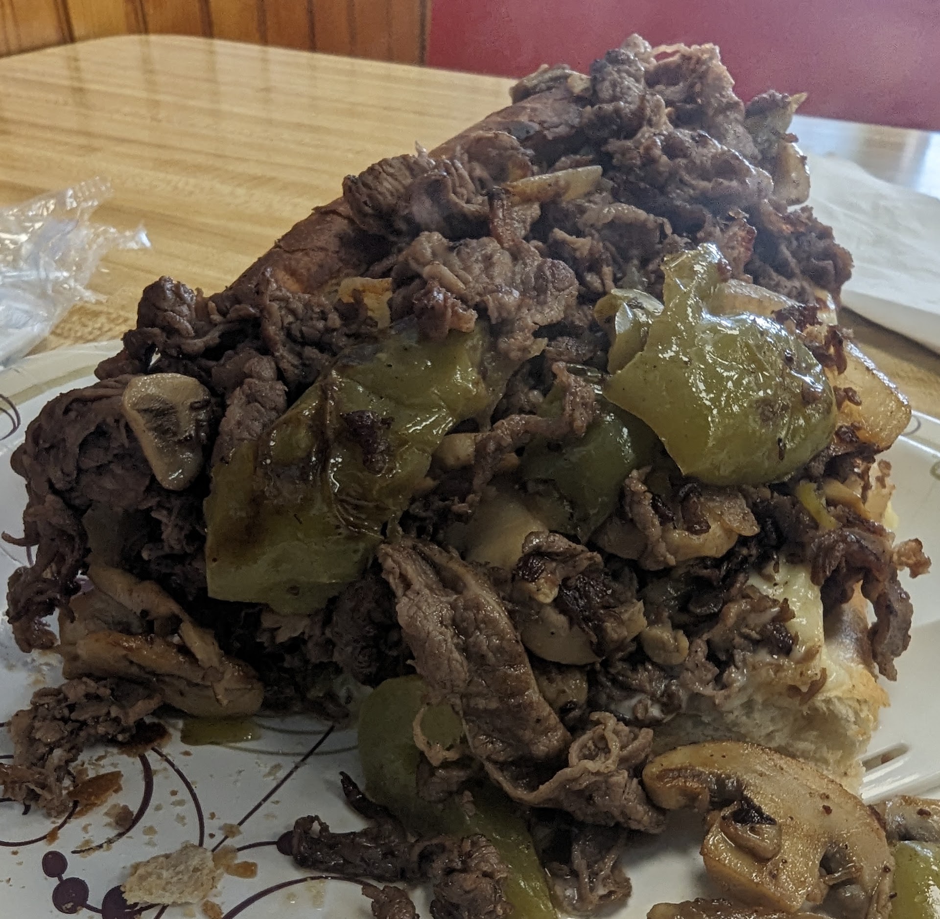 Read moreInterested place for a quick lunch. I heard about the steak and cheese and had to give it a try. I'll say this.... It's worth the ride. So a small corner pizza joint - the place puts out a bomb steak and cheese that is well worth the price. ...not to be confused with a steak bomb. There is probably enough steak in the sandwich to make two decent sandwiches. Ome interesting thing is the fact that pretty much everyone who came into the establishment was known by name by the staff. I don't mean one or two people but more like eight or ten people. Food seems to come off the grill pretty promptly and the cooler is stocked with an assortment of soda and other soft drinks. I did notice they have something like an omelet sandwich - quite interesting. Certainly worth a second...