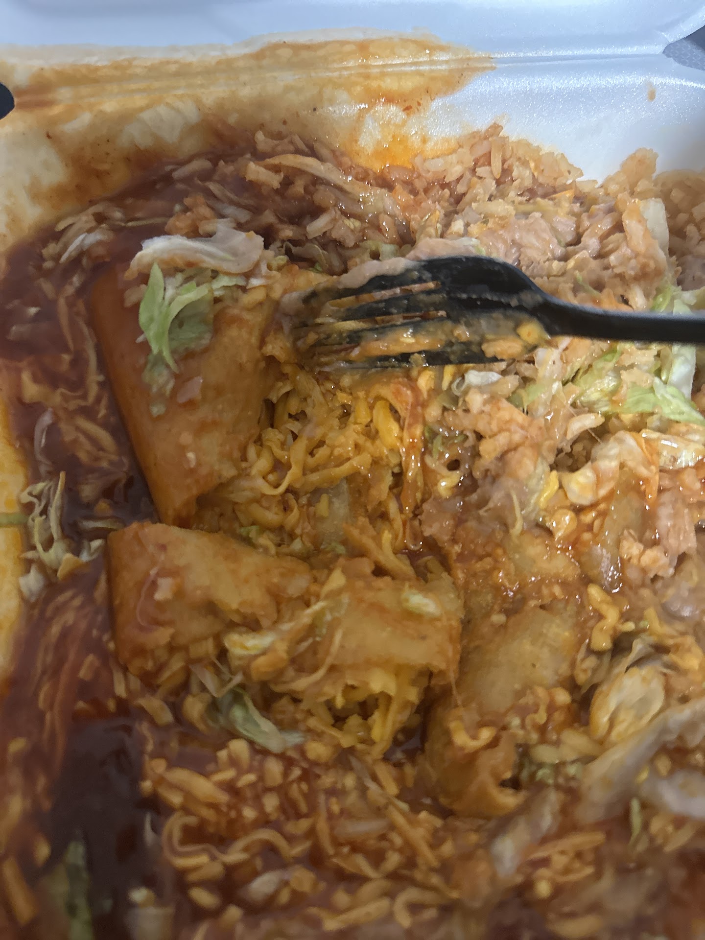 I want a refund. A few minutes ago, i stopped by here for lunch. On the menu, a combo for two cheese enchiladas with rice beans and a drink was about 8.50$. I ordered two cheese enchiladas with NO RICE AND BEANS OR COMBO just alacarte hoping this would be cheaper. They didnāt tell me the total at the speaker and before i could ask him the price at the window, the cashier snatched my card away. They donāt do the transaction at the window either, they take ur card away from the window so who knows if they could be taking ur information . When he gave me the receipt it was 9 FREAKING DOLLARS. More expensive than it would be for the combo. the receipt didnāt even have an item list of what i bought, just the price they wanted to charge me. When I got home, none of the cheese was even melted and they were COLD. I live a block away so thereās no way they got cold that fastā¦plus the cheese wasnāt melted so i know they didnāt even try to warm it up. Please give...